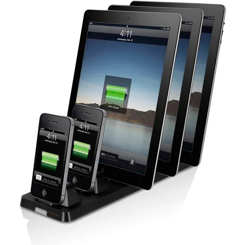 The XtremeMac InCharge X5 has 10 watts charging in each dock. The InCharge X5 takes charging to the next level. Each dock provides 10 watts of power to charge any combination of five - 30-pin- iPod, iPhone or iPad devices simultaneously. The InCharge docks slim design fits neatly on a desk or countertop, and cleans up the mess of needing multiple charging cables. Other features include rear supports that adjust to accommodate device depth and bi-colour LED status indicators to show when each device is fully charged.