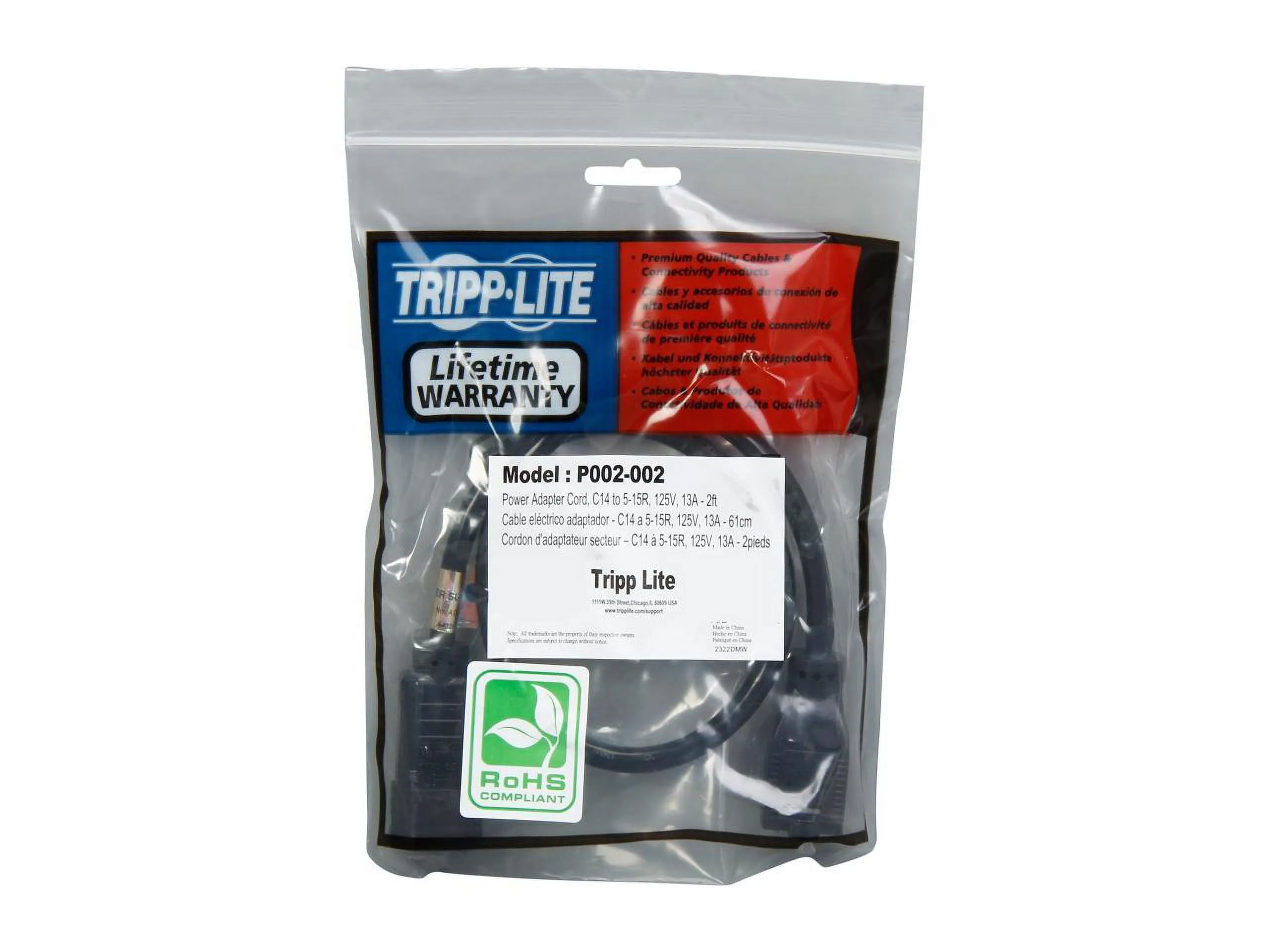 Eaton Tripp Lite Series NEMA 5-15R to C14 Computer AC Power Cable - 13A, 125V, 16 AWG, 2 ft. (0.61 m), Black