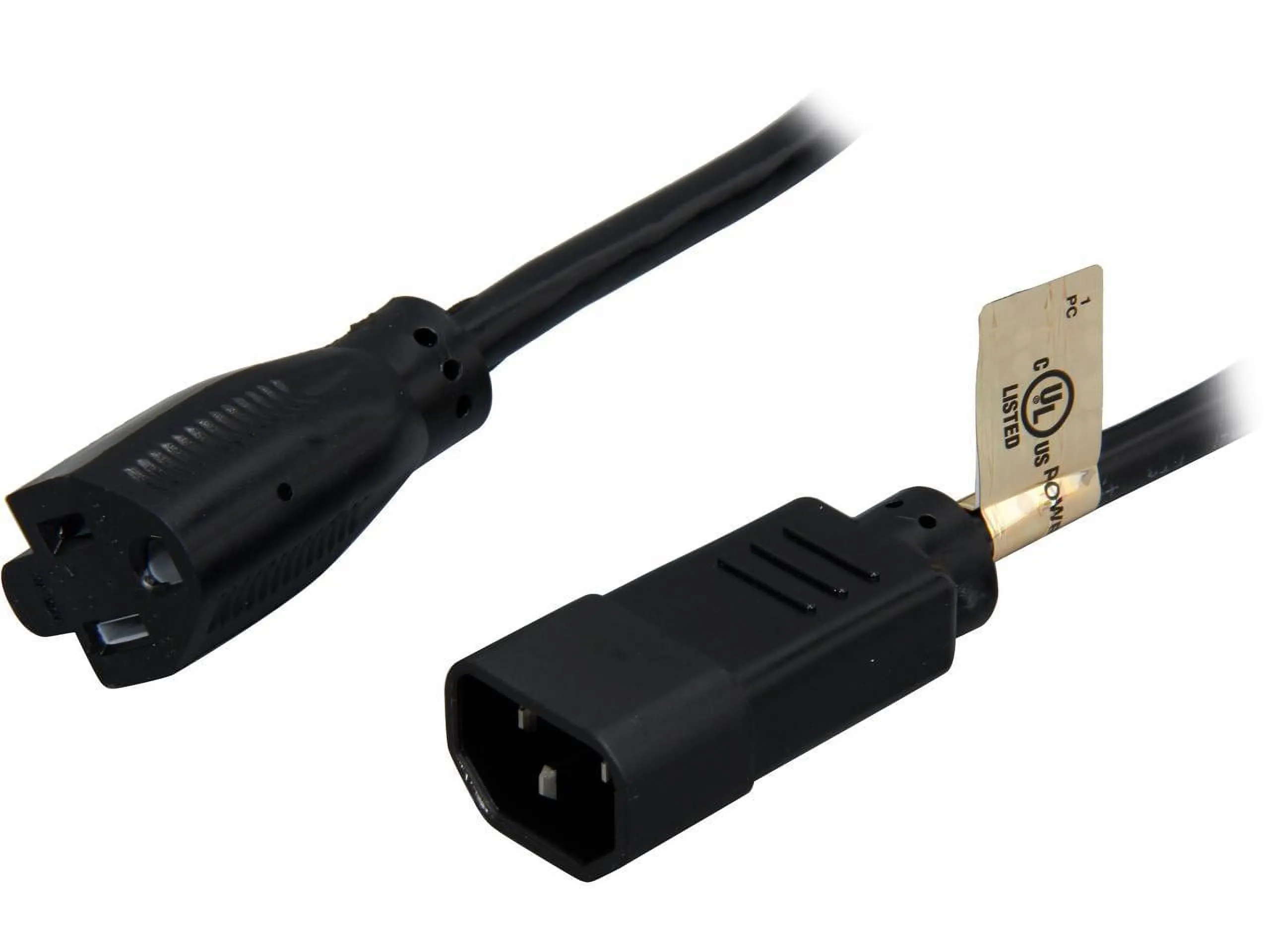 This computer AC power cable is designed for low-voltage data center, server room or home/office applications. It converts a NEMA 5-15P plug into a C14 connector. You can use it to connect a computer, monitor, printer or other device with a NEMA 5-15P plug to a surge protector, UPS system or PDU with C13 power outlets. You can also connect your C13 printer or monitor to a switched source on your PC, allowing you to turn both devices on and off at the same time. The 2-ft. (0.61 m) length helps reduce cable clutter.