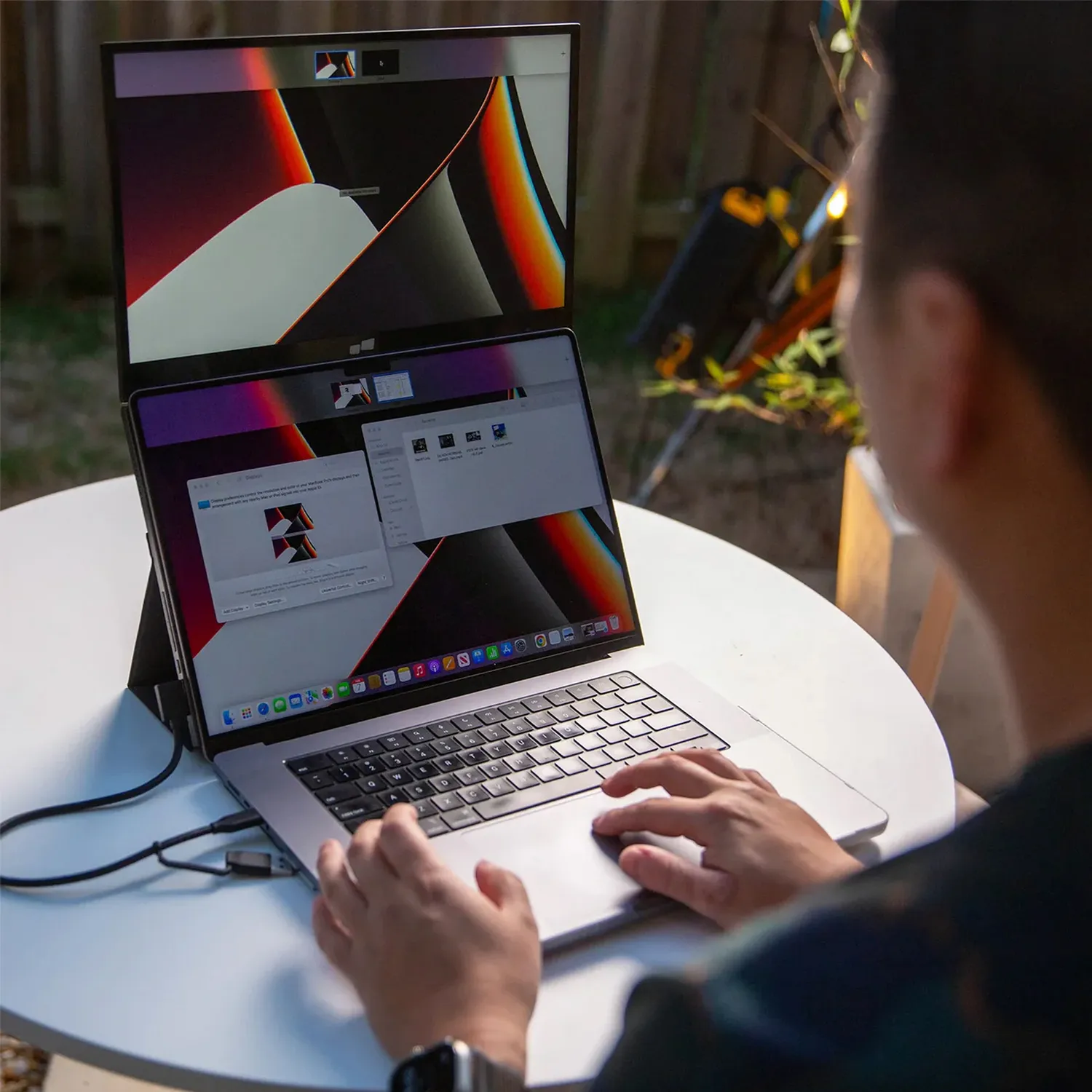 The Duex Float 2.0 is a state-of-the-art portable monitor designed to enhance your productivity on the go. With its sleek design and lightweight build, it easily attaches to any laptop, providing you with an additional 15.6" display.