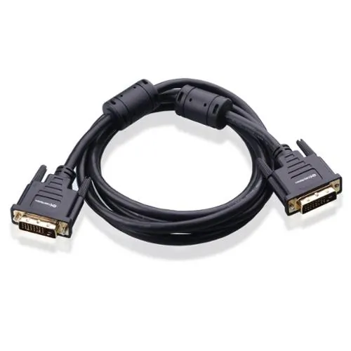 Superior construction of DVI D cable male to female includes gold-plated connectors in a sturdy housing with DVI thumb screws for a secure connection to the existing DVI cord; Bare copper conductors, foil & braid shielding and integrated dual ferrite cores provide superior cable performance, static-free transmission and noise suppression in this DVI-D cable
