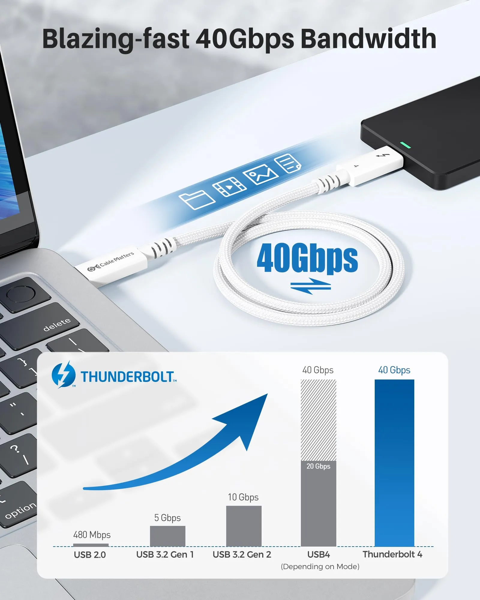 Supports up to 40 Gbps data transfer speed