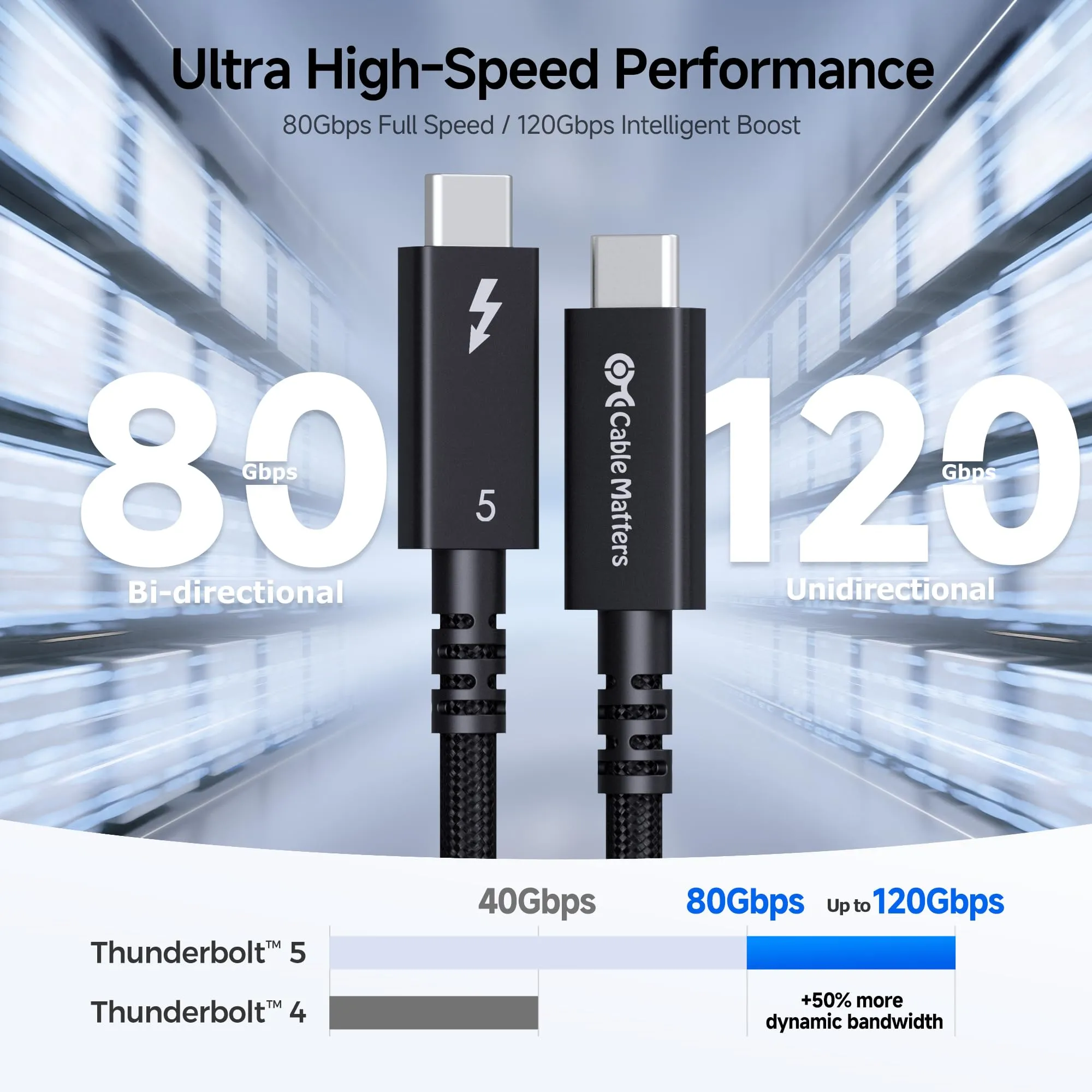 CABLE MATTERS INTEL CERTIFIED 80GBPS ACTIVE THUNDERBOLT 5 CABLE - 6.6FT / 2M, SU