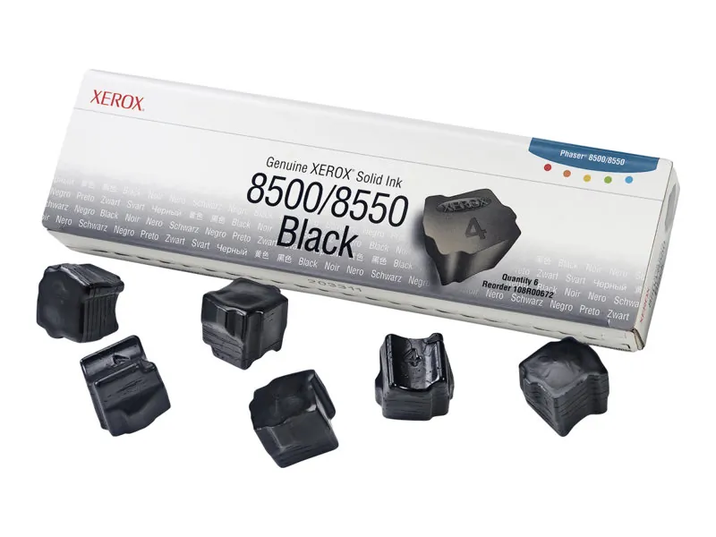 Solid ink sticks are an integral part of Xerox's simple, intuitive supplies system. Interlocking ink shapes and a unique numbering system make the ink-loading process easy. High-performance, solid ink formulations deliver brilliant color and razor-sharp text every time, and can be used with either Xerox Phaser 8500 or Phaser 8550 color printers.