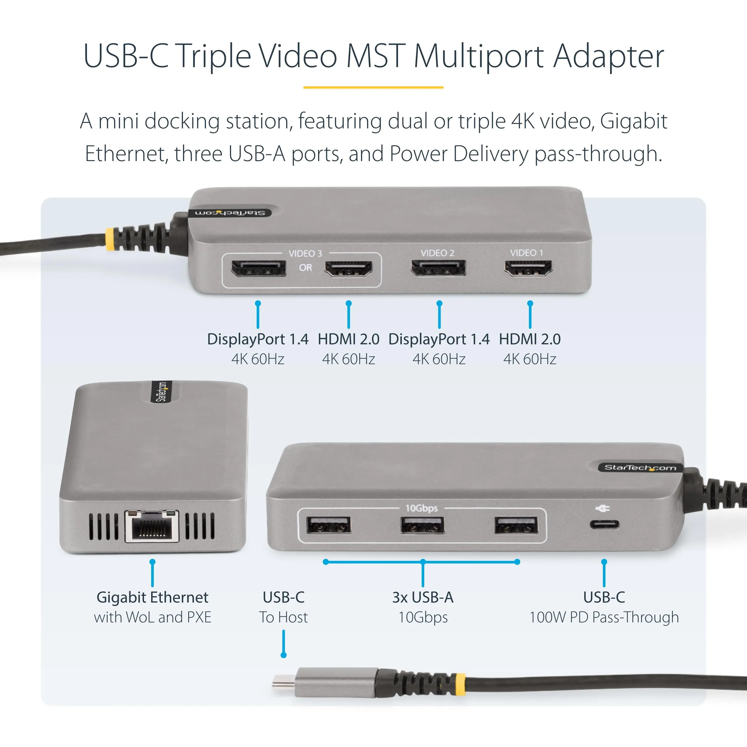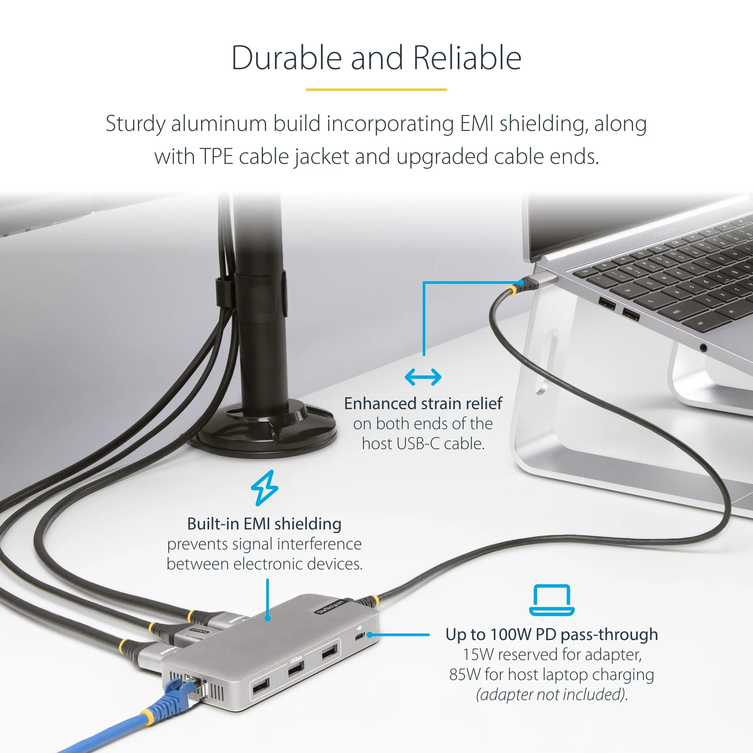 T, 3-PORT USB 10GBPS HUB, 100W PD PASS-THROUGH, GBE, TRAVEL DOCK