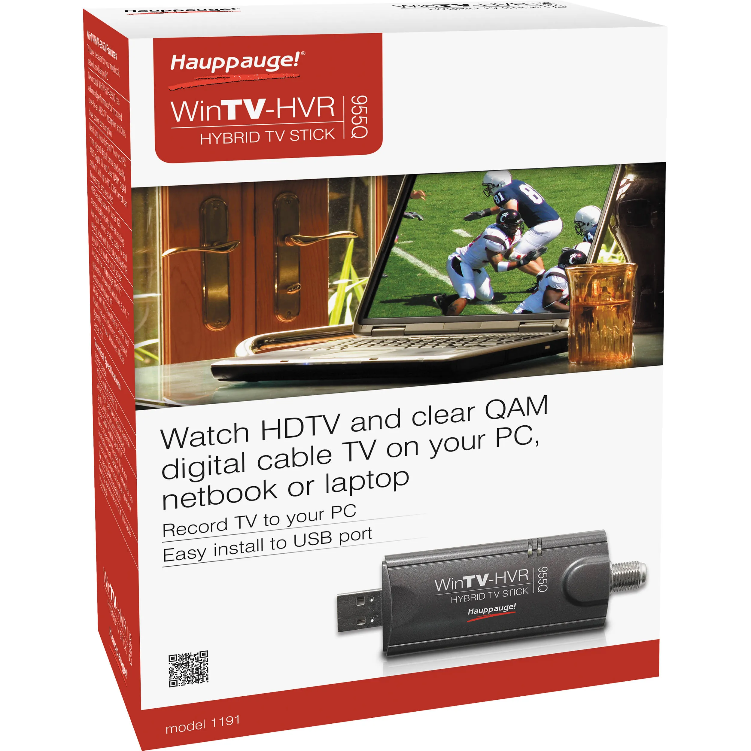 The WinTV-HVR-955Q is a usb2 HDTV Stick with a Hybrid TV tuner receiver for both NTSC analog, over-the-air digital and Clear QAM digital cable TV. Watch, pause and record television on desktop, notebook or laptop computers. It's Pocket Size form factor makes it the perfect traveling companion for use with laptop and notebook computers. Ships with standing portable telescoping antenna. Compatible with Windows Vista, Windows XP, XP Pro or XP Media Center Edition, with Service Pack 2. Includes high quality credit card size remote control