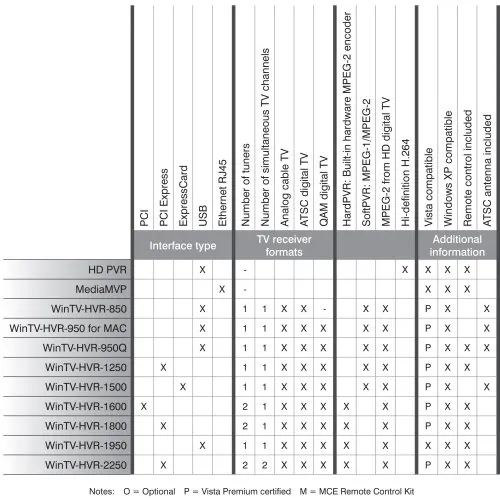Receive ATSC digital TV or Clear QAM digital cable TV, up to 1080i formatReceive NTSC analog cable TV with the built-in 125 channel cable-ready TV tunerIncludes WinTV v8: watch, pause and record TV on your PC, in window or full screen. Record digital TV in the original HD quality.Schedule TV recordings with WinTV v7's built-n TV scheduler softwareCompatible with Windows 10, 8, 8.1, 7 and Windows XP.Product Type: TV TunerFunctions: TV Tuning, Video RecordingVideo System: ATSC, NTSC, Clear QAMMaximum Resolution: 1920 x 1200Platform Supported: PCHost Interface: PCI Express x1, PCI Express x16Audio Line In: YesForm Factor: Plug-in CardSystem Requirements: Minimum 2.2 GHz Intel P4 or equivalent processor required, Available PCI Express X1 or X16 slot, Graphics with 64MB memory (or greater), Sound card, Microsoft Windows Vista or Windows XP with Service Pack 2. WinTV-HVR-1250 is Windows , Vista Premium certified