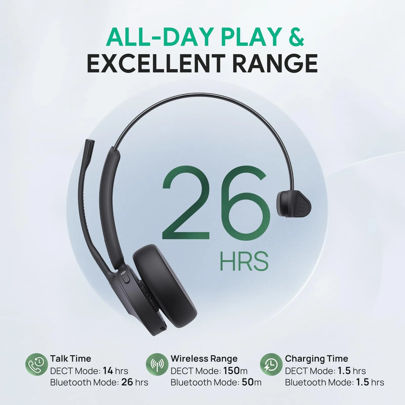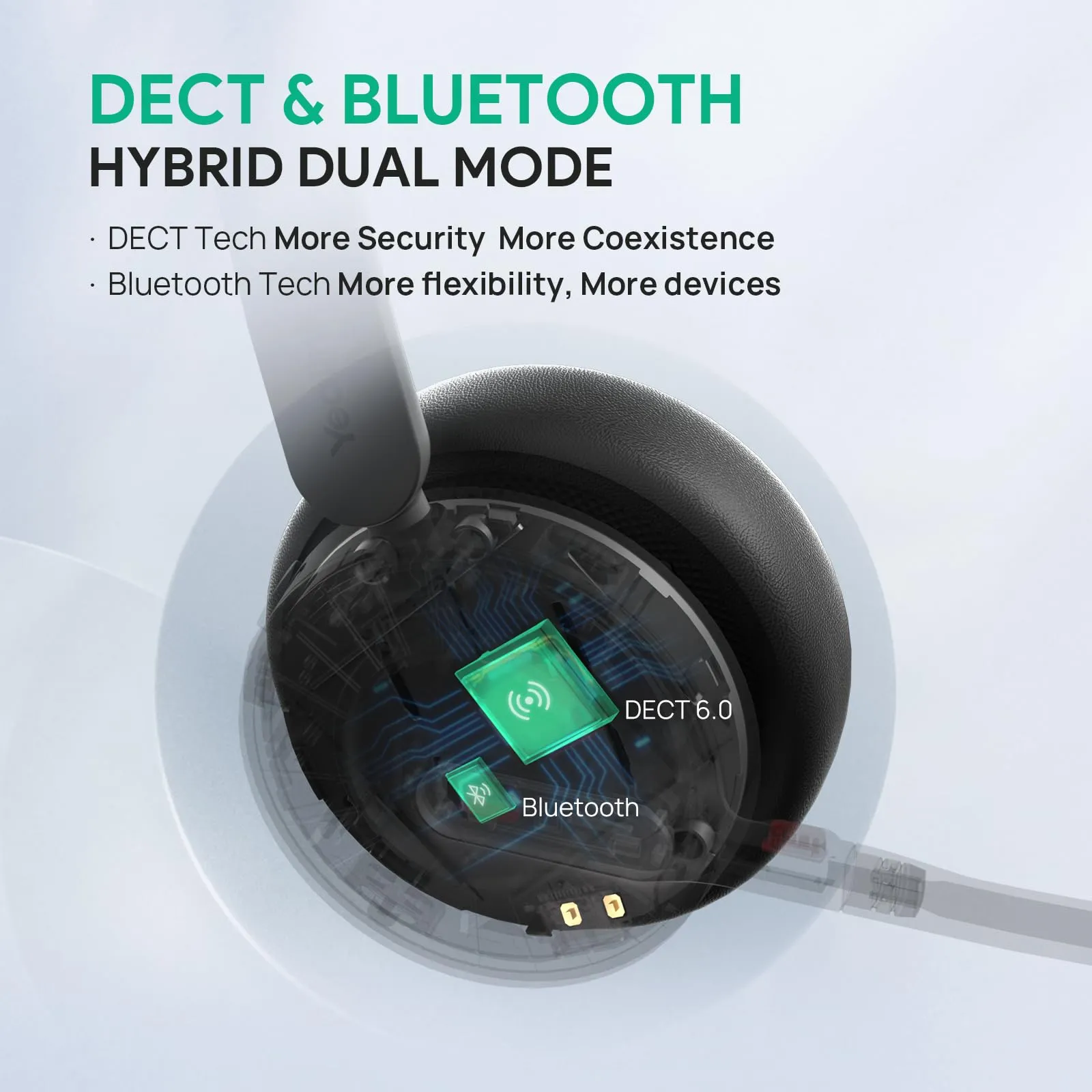 The Yealink WH64 Mono Teams Headset offers the perfect combination of DECT and Bluetooth connectivity, designed for seamless communication in any environment. Its sleek design and lightweight build ensure maximum comfort during long hours of use. The headset is fully compatible with Microsoft Teams, featuring a dedicated Teams button for instant access to your calls and notifications.