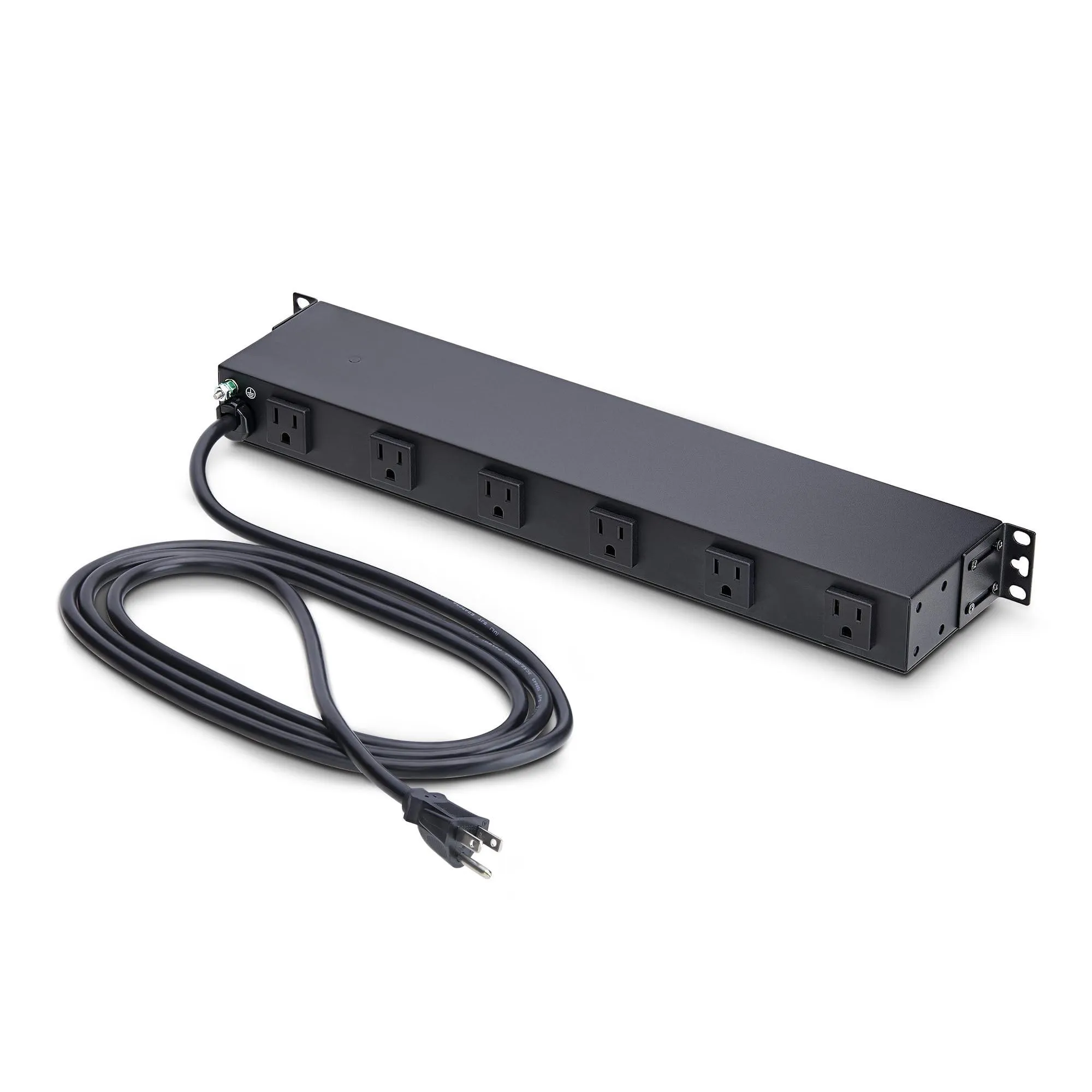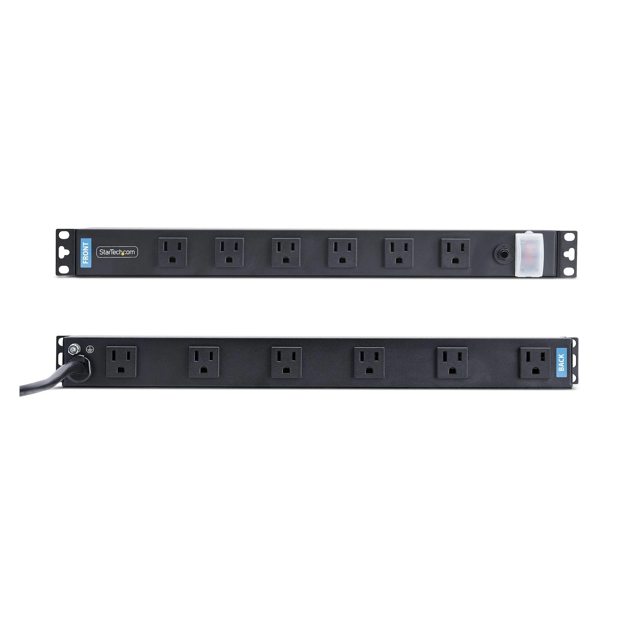 12-OUTLET RACKMOUNT PDU, 1U SERVER POWER STRIP WITH WIDE-SPACED RIGHT-ANGLE PORT