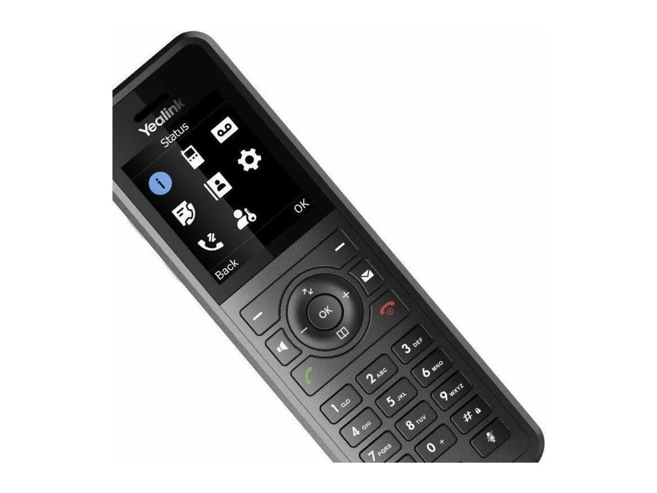 Core Features: Rugged DECT handset with IP54 protection rating, Scratch resistant, disinfectant resistant, 1.8 128 x 160 TFT color screen with intuitive user interface, HD audio and Flexible Noise Reduction (FNR), Vibration alarm, Up to 40-hour of talk time, Up to 575-hour of standby time, Keypad backlight and keypad lock, Fully compatible with Yealink W80/W90 MultiCell System.