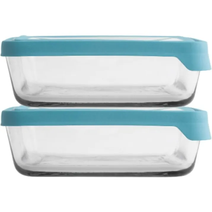 Keep your food fresh and secure with the Anchor Hocking 4-Piece TrueSeal 2x6 Cup Glass Food Storage Set. This set includes two 6-cup rectangular glass storage containers, each featuring a BPA-free, textured TrueSeal lid that forms an airtight seal to prevent spills and leaks.