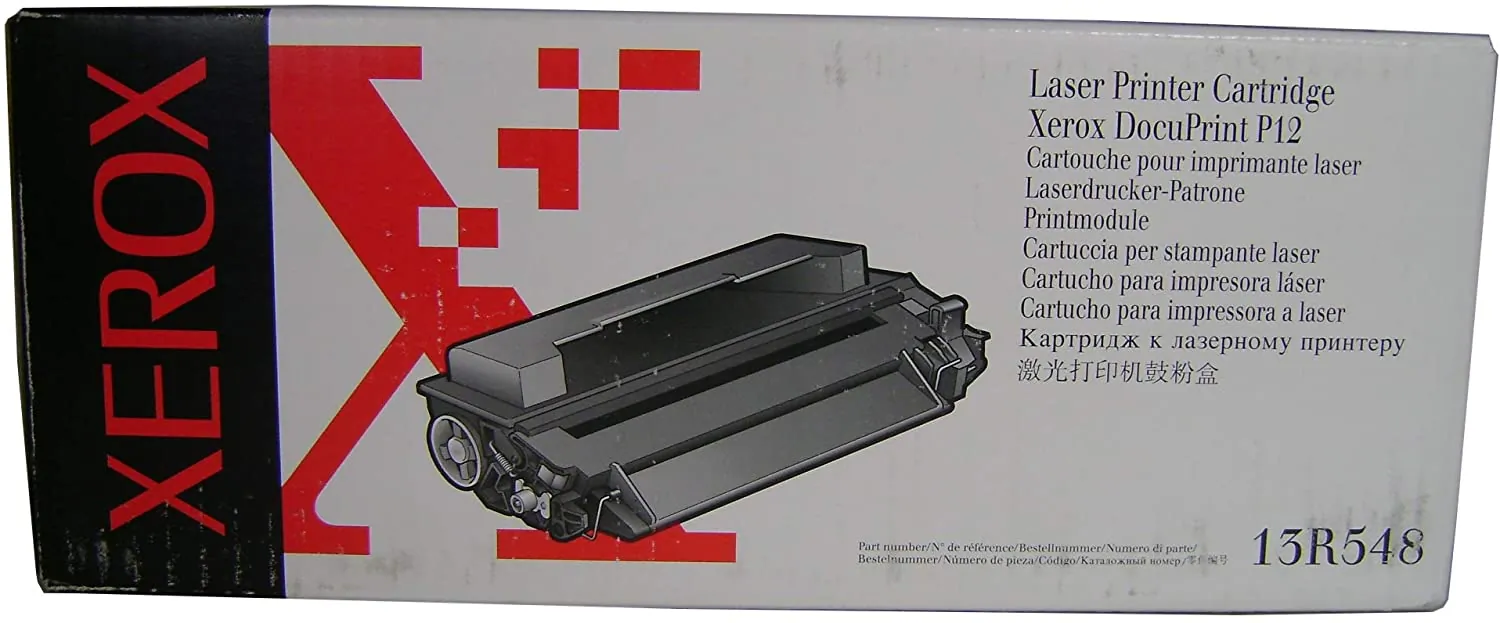 The XEROX 013R00548 black print cartridge is designed for use with the Xerox DocuPrint P12 printer. It delivers high-quality prints with sharp text and vibrant images, making it ideal for both home and office tasks. This cartridge is easy to install and is engineered for reliable performance, ensuring that your printer produces consistent, professional results.