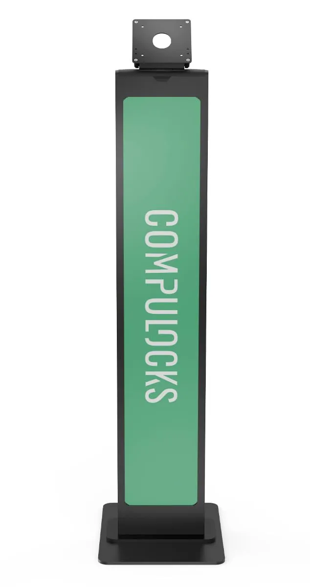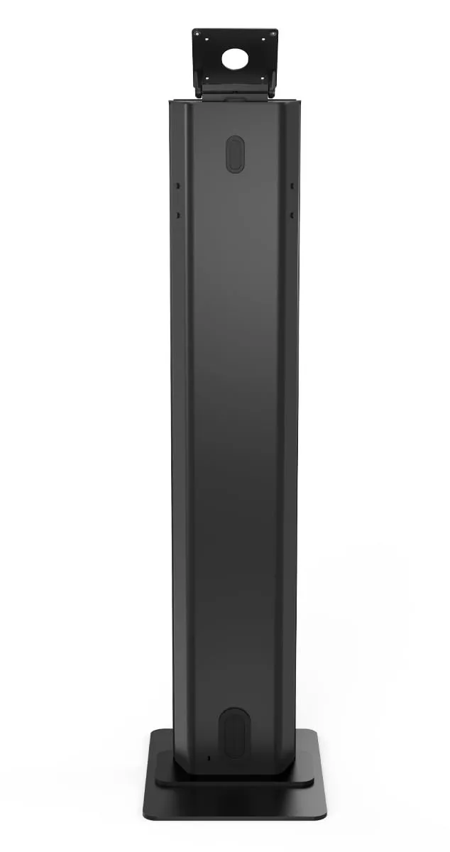 This stylish branded black floor tablet stand is perfect for showcasing your device in various settings. Designed for durability and stability, it provides a professional display option for events or presentations.