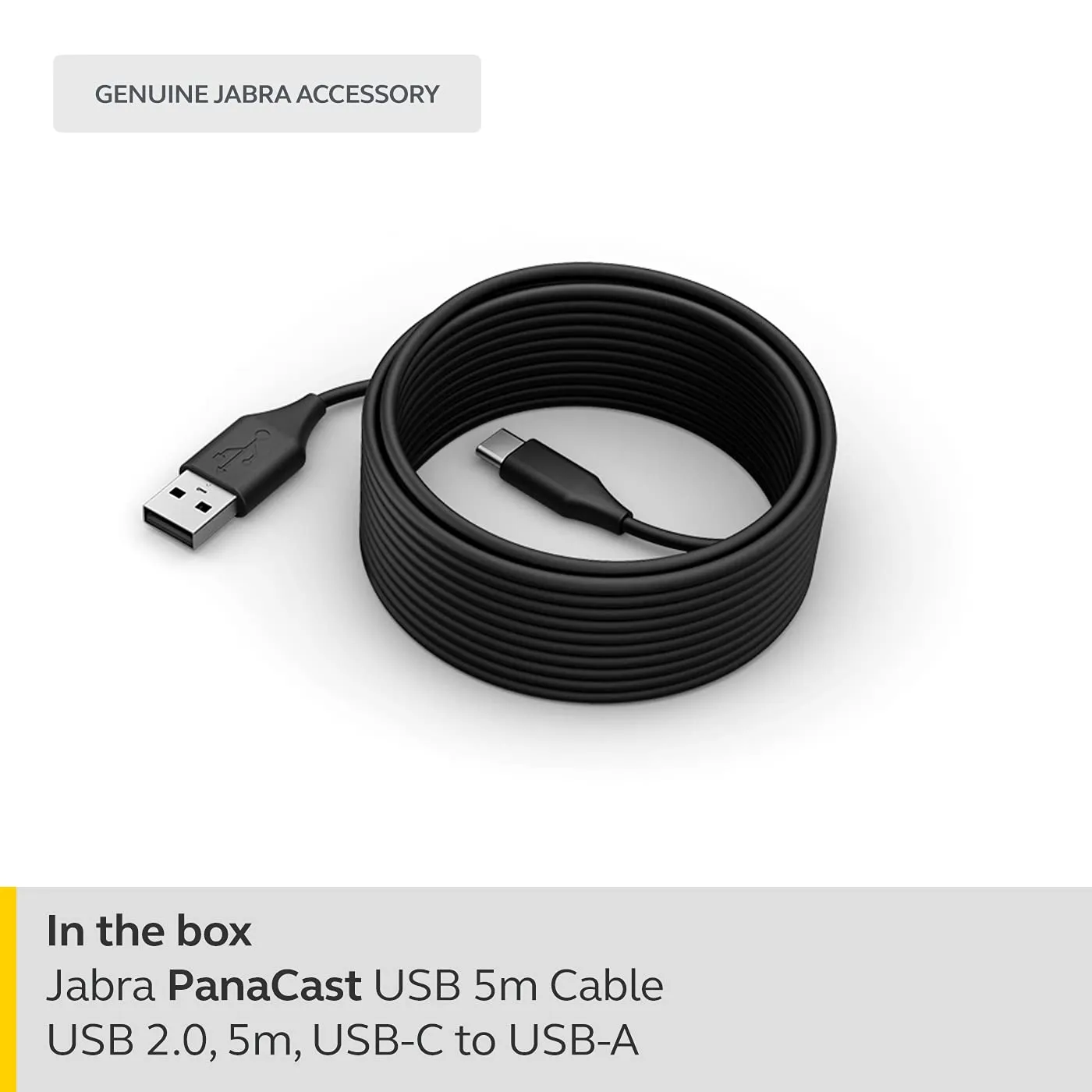 Enhance your connectivity with the 5-meter USB 2.0 cable designed for the Jabra PanaCast 50. This durable cable features a Type-C to Type-A connection, providing reliable data transfer and power delivery for your video conferencing needs.