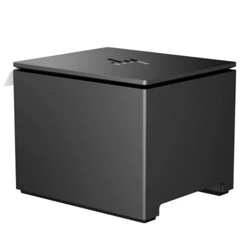 The HP ElitePOS Monochrome direct thermal printer in ebony black color, consumes 48 W and uses 120 - 230 VAC, 50/60 Hz, 2 A power supply for its operation. It has serial, USB 2.0, 9 pin D-Sub and RJ-12 interface. The printer has 8MB RAM and flash memory and prints at a speed of 269.3"/min. The printer is compatible to use 3.15" thermal paper roll of 0.002" - 0.003" thick. The printer uses drivers and utilities and OPOS/JavaPOS software drivers. It supports codabar, code 128, code 39, code 93, data matrix, EAN-128, EAN-13, EAN-8, GS1 DataBar, Interleaved 2 of 5, PDF417, QR code, UPC-A, UPC-E barcodes.
