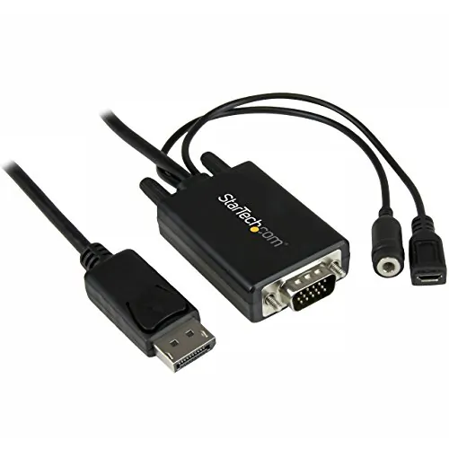 This 6FT DisplayPort to VGA video adapter allows you to connect your DisplayPort-enabled device to a VGA monitor or projector. With integrated audio support, it transmits video and sound seamlessly. Perfect for presentations or extending your desktop.