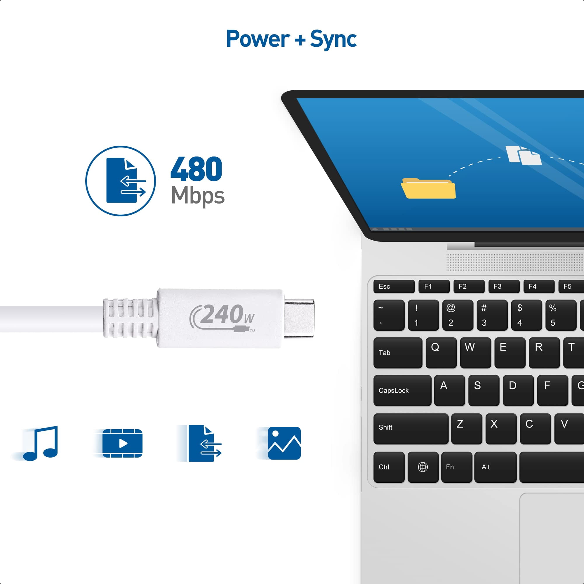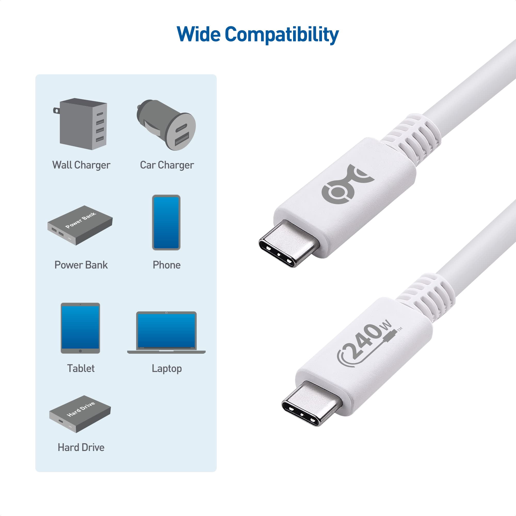 Built with durability in mind, the cable provides robust data transfer speeds while delivering up to 240W power, making it ideal for charging laptops, tablets, and smartphones.