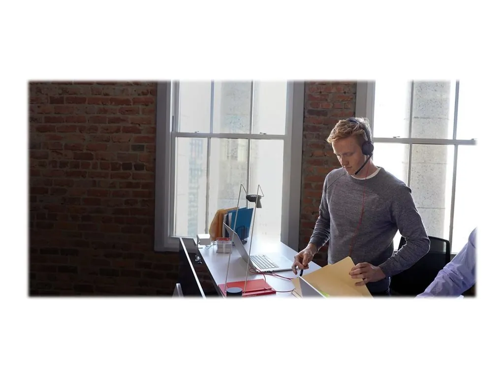 Ideal for all-day use, long conference calls and listening to multimedia.One-touch call answer/end, volume +/- and mute.User friendly audio prompts and inline indicator lights alert the user to connection, mute and volume status.Take it on the go with folding ear cushions and included carrying case.Model Number: 207577-01