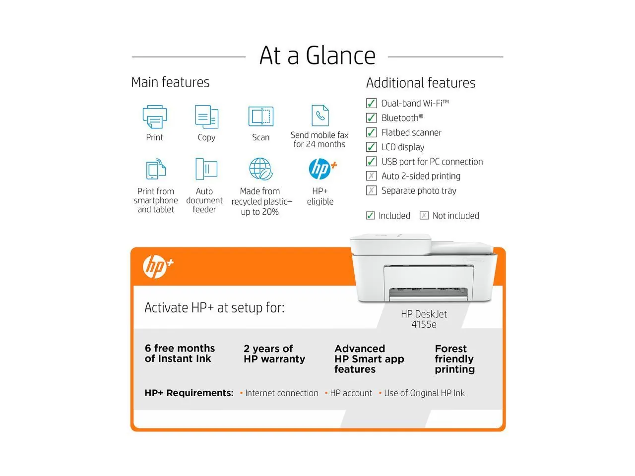 • Mobile Support: HP Smart App, Apple AirPrint, Mopria