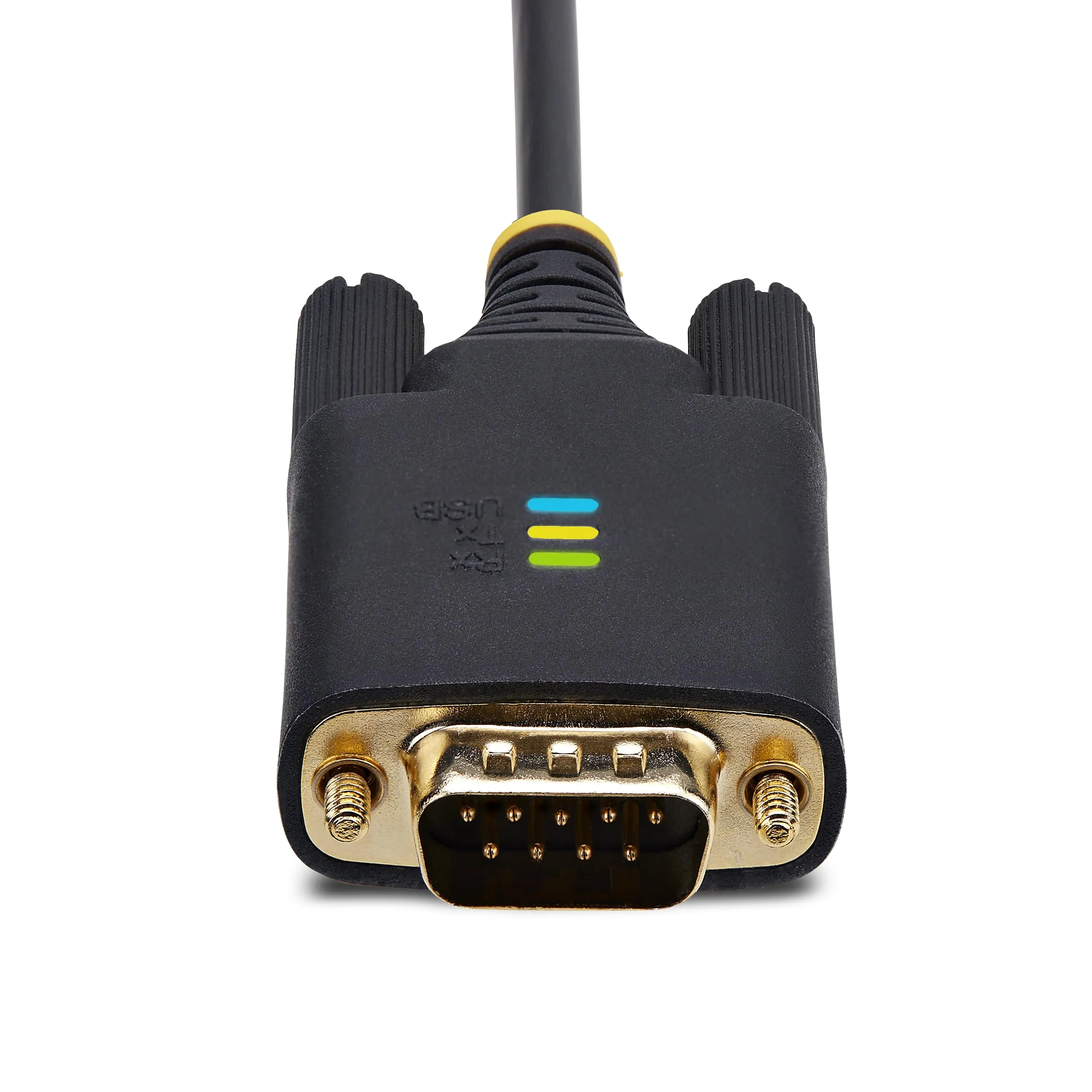 Add two DB9 RS-232 serial ports to a desktop/laptop using a single USB-A port - DB9 screws pre-installed; DB9 Nuts included for device/cable compatibility - One-piece TPE housing and level-4 ESD protection; Copper shielding; Gold plated connectors; Mounting bracket incl. - Transmit/Receive LED indicators; USB LED for when the adapter has successfully enumerated on the host - Windows/macOS/Linux; 6.5ft (2m) cable length after the mountable hub; Max Baud 115.2Kbps; 4KB FIFO; FTDI FT232H Chipset