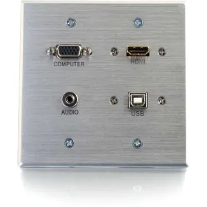 C2G HDMI VGA 3.5mm and USB Pass Through Double Gang Wall Plate - Aluminum - mounting plate