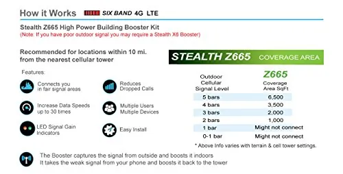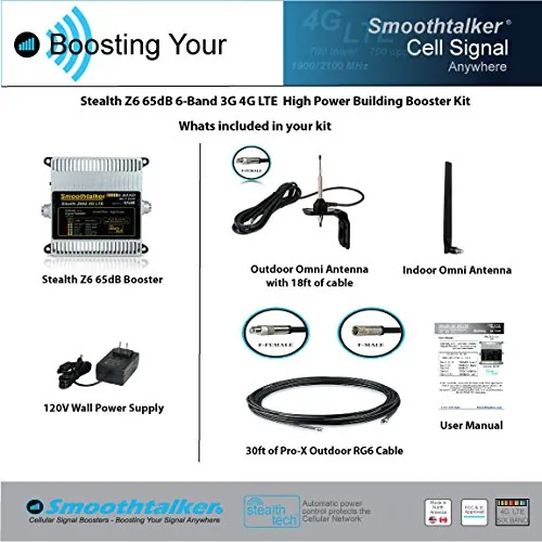 Smoothtalker Stealth Z6 65dB 4G LTE High Power 6 Band Cellular Signal Booster Kit - 700 MHz 850 MHz 1900 MHz 1700 MHz 2100 MHz - LTE - 4G - Omni-directional Antenna HIGH POWERED SIGNAL BOOSTER