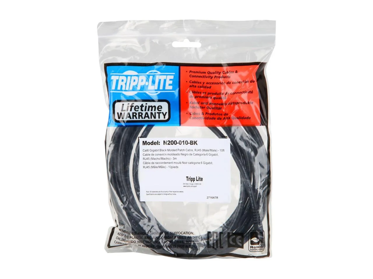 Tripp Lite Cat6 Gigabit Molded Patch Cable (RJ45 M-M), Black, 10 ft - Category 6 for Network Device, Router, Modem, Blu-ray Player, Printer, Computer - 128 MB-s - Patch Cable - 10 ft - 1 x RJ-45 Ma