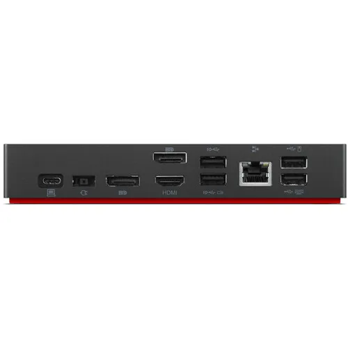 Dock and power your laptop with the ThinkPad Universal USB Type-C Dock from Lenovo. Connect wired accessories via a USB 3.1 Gen 2 Type-C and three USB Type-A ports. Two USB 2.0 ports are also present, allowing you to connect a keyboard and mouse. Network or tackle video conferences using the Gigabit Ethernet and 3.5mm
