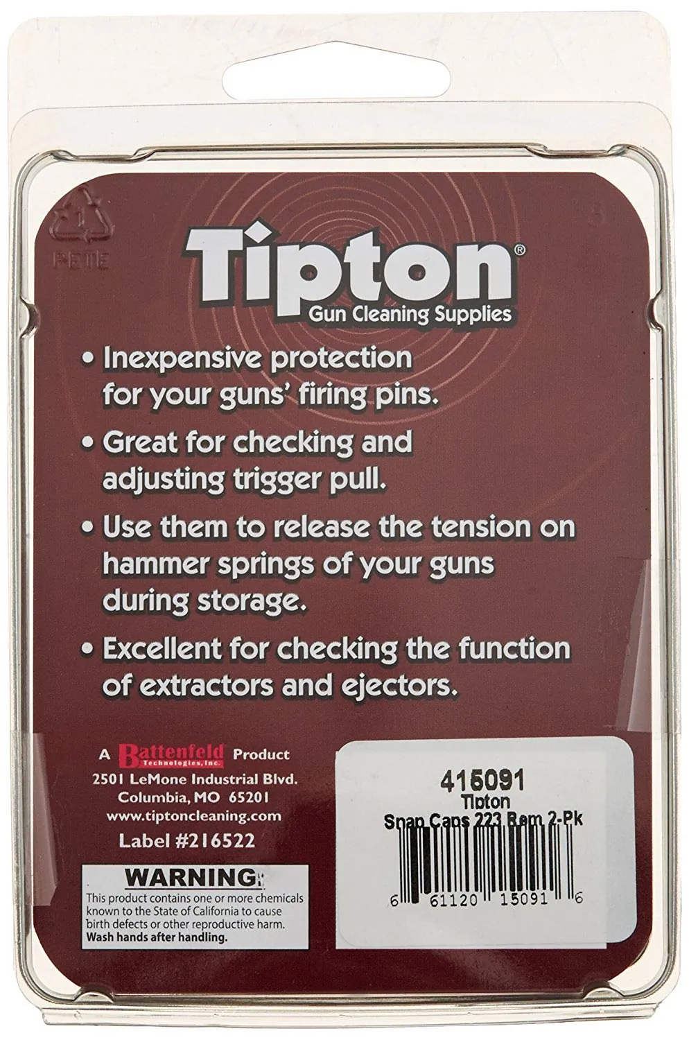 The Tipton Snap Cap Rifle 223 Rem 2-Pack is designed to help you safely dry fire your rifle without causing damage to the firing pin or chamber. These snap caps mimic the weight and dimension of real ammunition, making them a perfect training tool for shooters of all levels.
