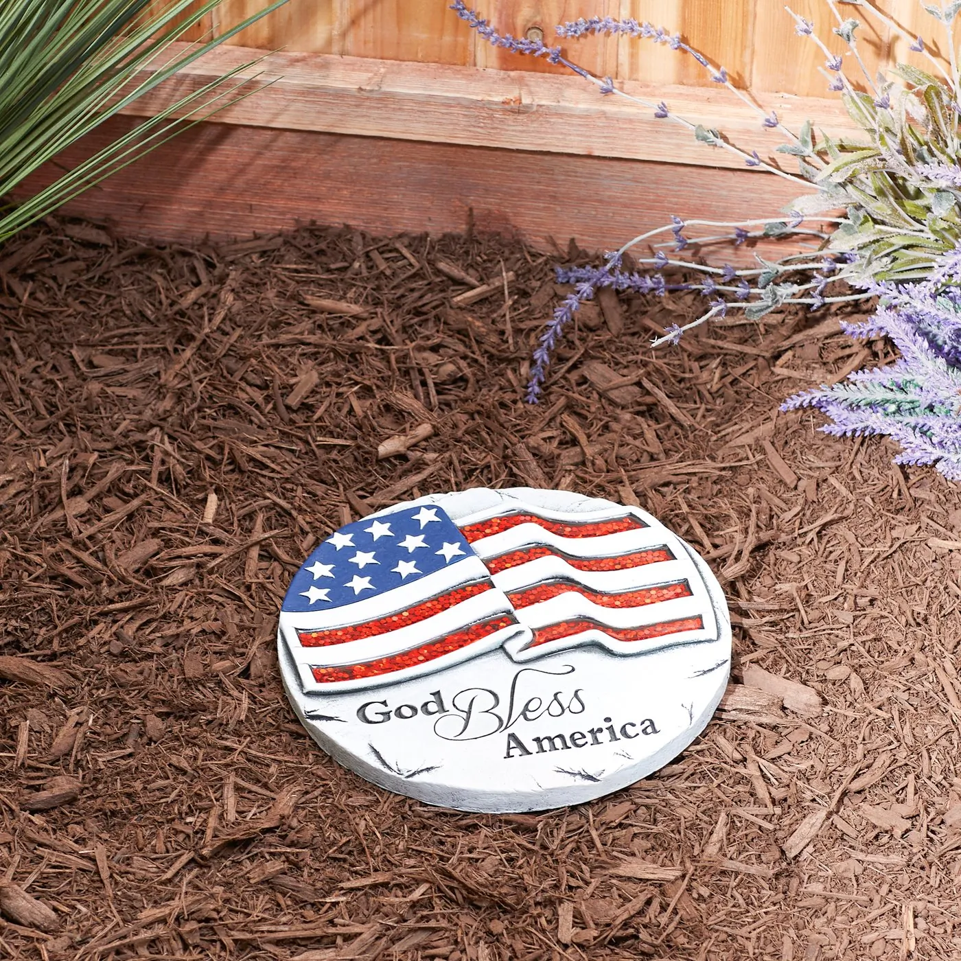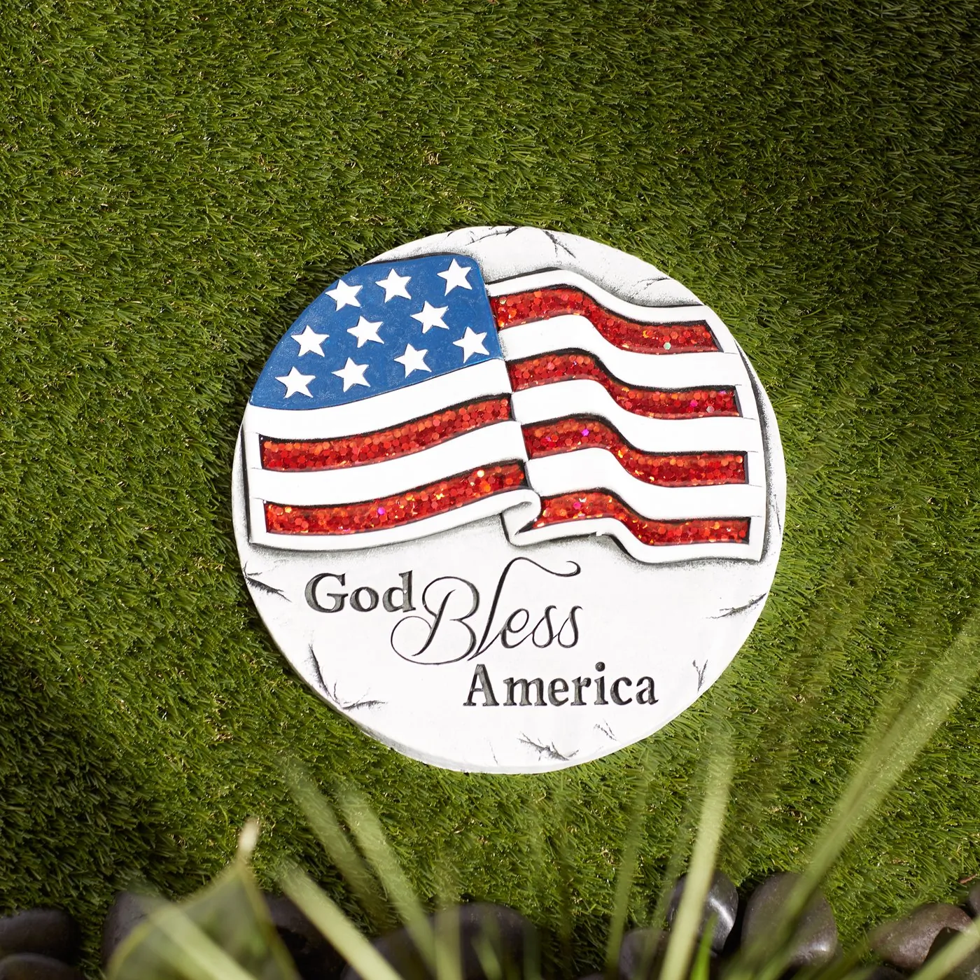 Sparkly God Bless America Cement Garden Stepping Stone