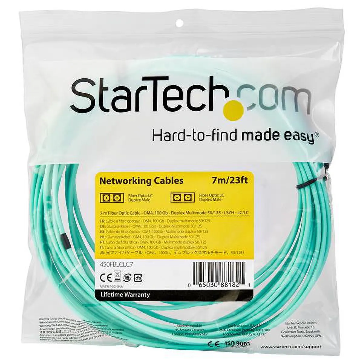 StarTech CB 450FBLCLC7 7m OM4 LC to LC Multimode Duplex Fiber Optic Patch CB