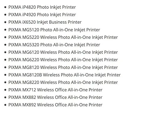 0, MX882, IX6520, IP4920, MG5320, MG6220, MG8220, MX892