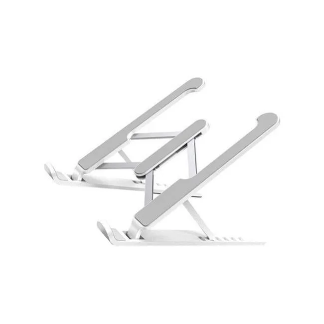 This adjustable laptop stand is designed for travelers and remote workers who need to create an ergonomic workstation anywhere. It features a sleek silver finish and a lightweight design for easy portability. Whether you're at a café, airport, or home, this stand elevates your laptop to eye level, reducing neck and back strain.