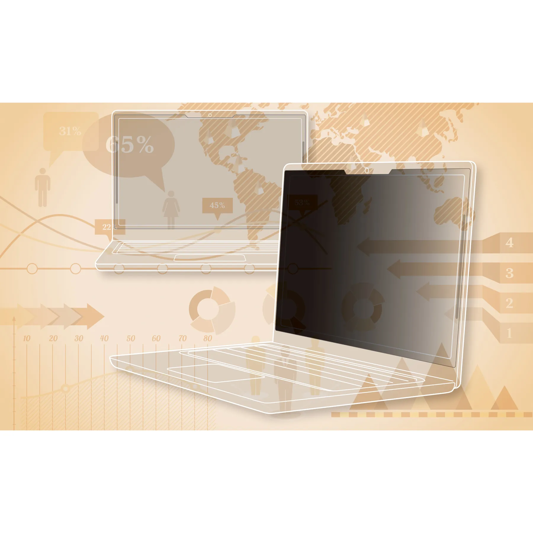 Black Privacy Filters for touch laptops deliver world-class effective "black out" privacy from side views. One of our thinnest privacy filters and designed for today's thinnest devices. The custom-cut filter has a satin-like matte finish that is smooth to the touch and provides incredible image clarity, making it great for high-resolution screens. From 3M, a leader in touchscreen privacy.