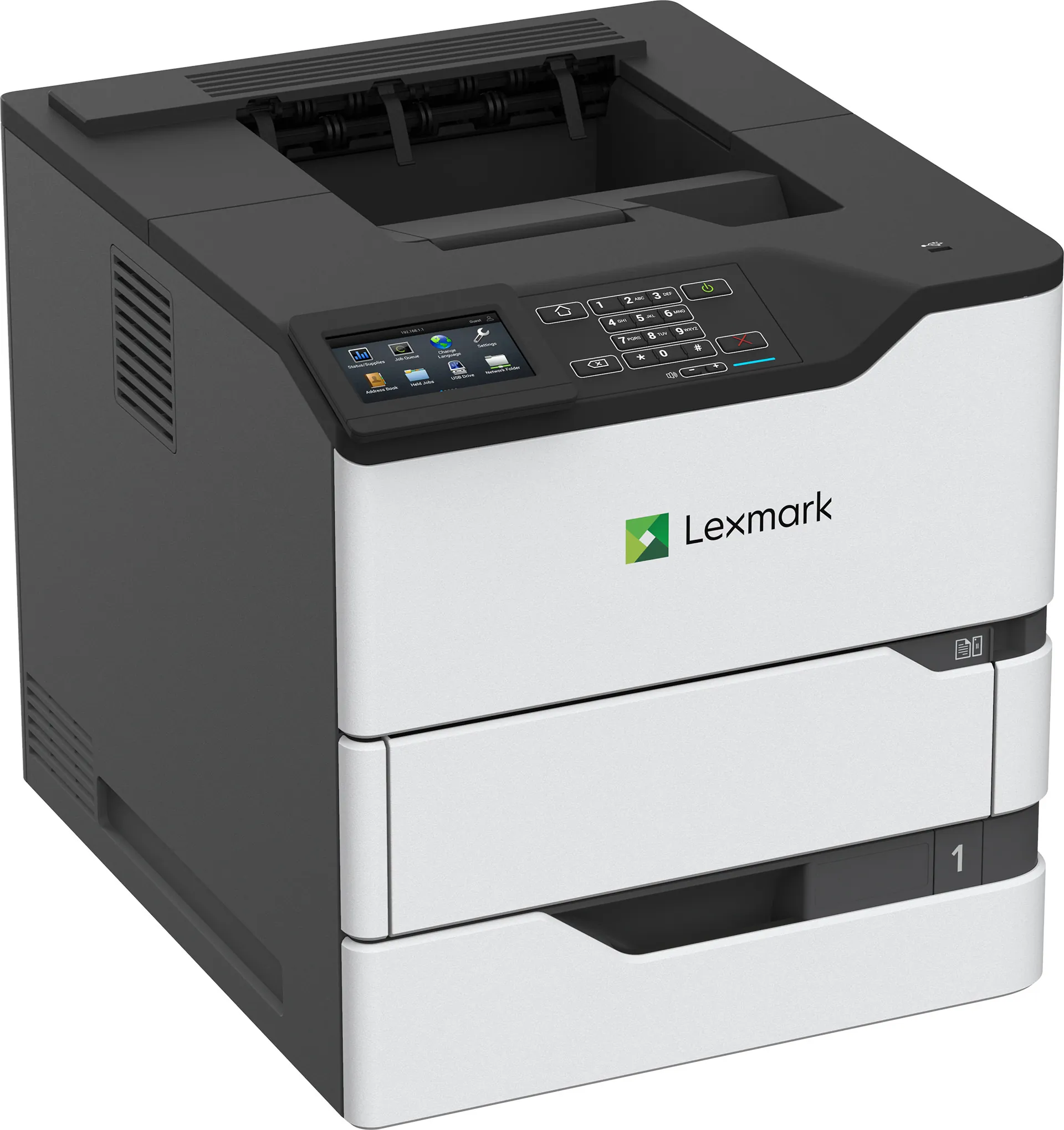 Lexmark MS826de Mono Laser Printer (70 ppm) (1 GHz) (1.2 GB) (Duplex) (350,000 Duty Cycle) (USB) (Ethernet) (550 Sheet Input) (100 MPT) (Touchscreen) (Energy Star)