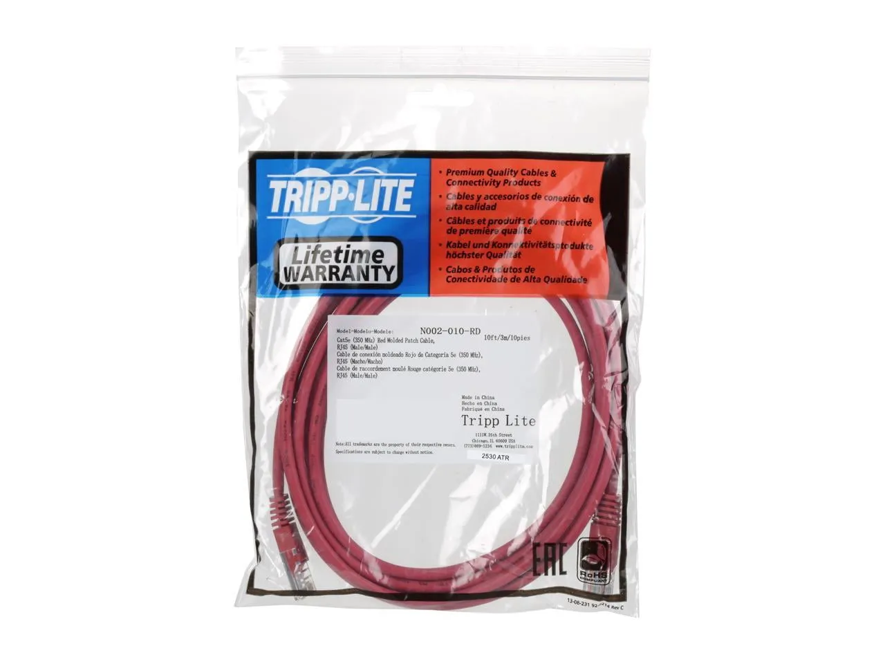 Tripp Lite 10ft Cat5e - Cat5 350MHz Molded Patch Cable RJ45 M-M Red 10' - 10ft - 1 x RJ-45 Male - 1 x RJ-45 Male - Red