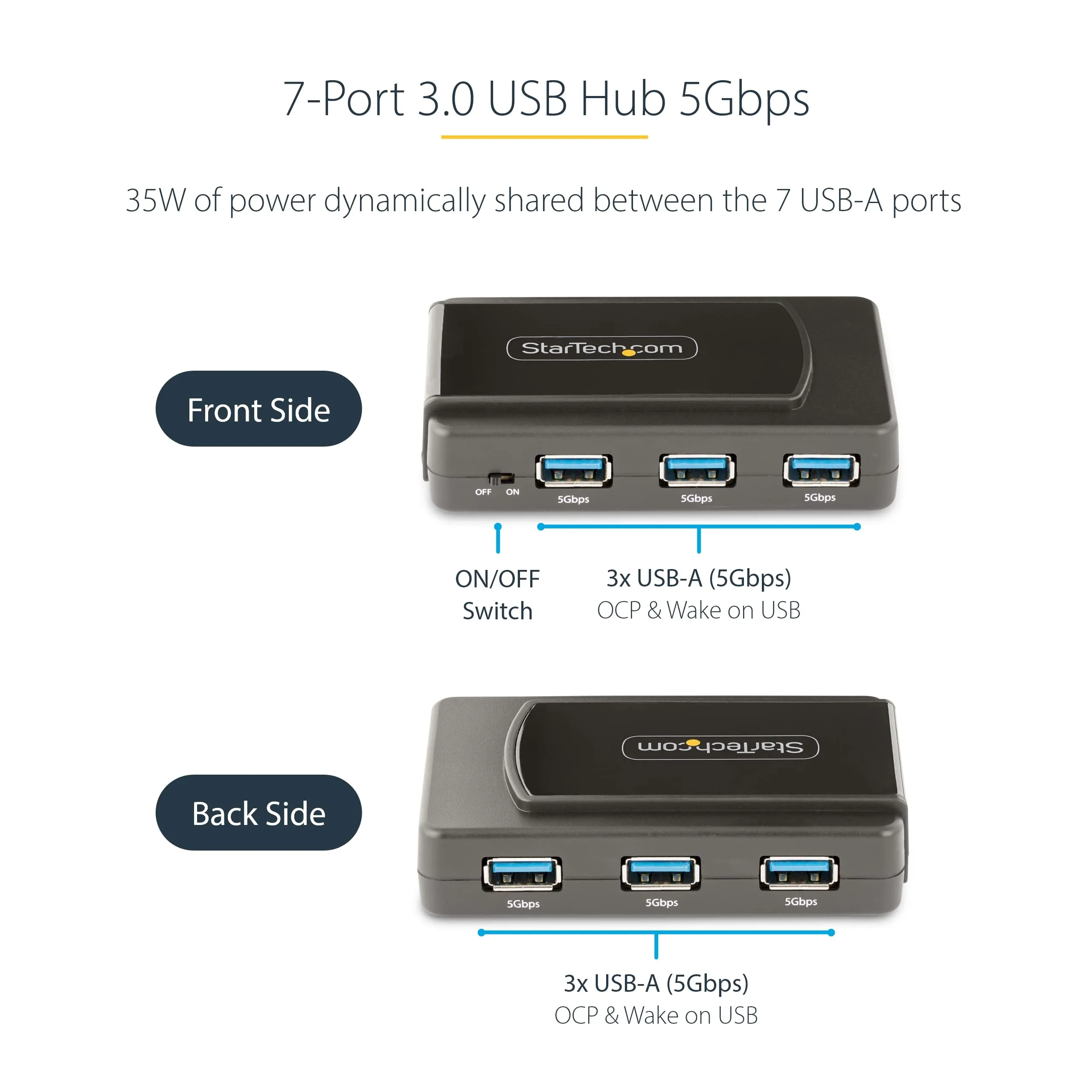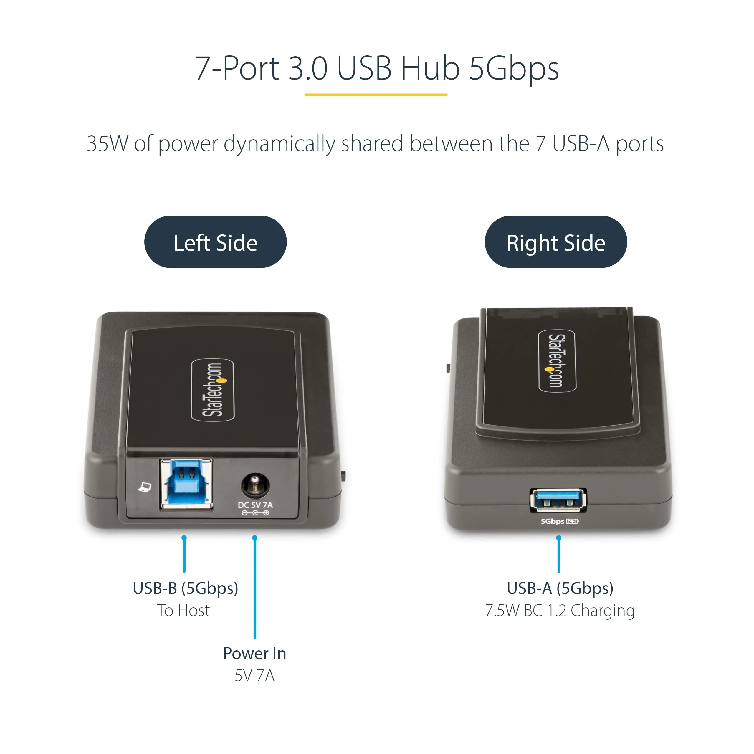 Enhance your connectivity with our 7-Port USB 3.0 Hub, designed for seamless data transfer and charging. This self-powered hub supports USB 3.2 Gen 1 with speeds up to 5Gbps, making it ideal for desktop computers and workstations.