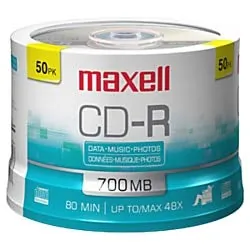Maxell 625156 - CDR80MU50PK MaxData CD-R Music 32x 80-Minute Blank Discs on Spindle (50 Pack)