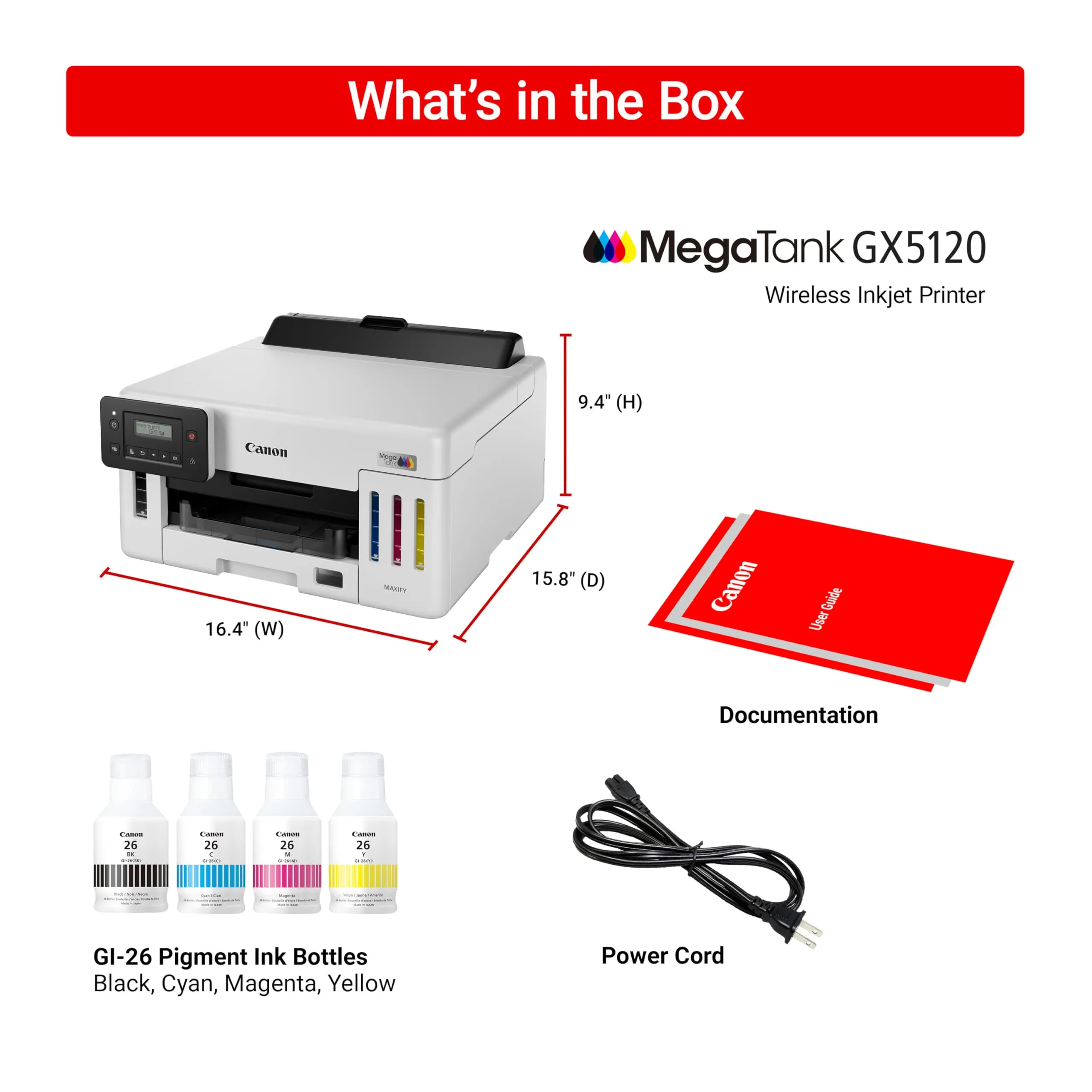 The MAXIFY GX5120 is an efficient all-in-one printer designed for the needs of small businesses. Equipped with MegaTank technology, it offers a high-capacity ink system that drastically reduces printing costs while delivering exceptional quality prints. With fast print speeds and wireless connectivity, this printer is perfect for any busy office environment.