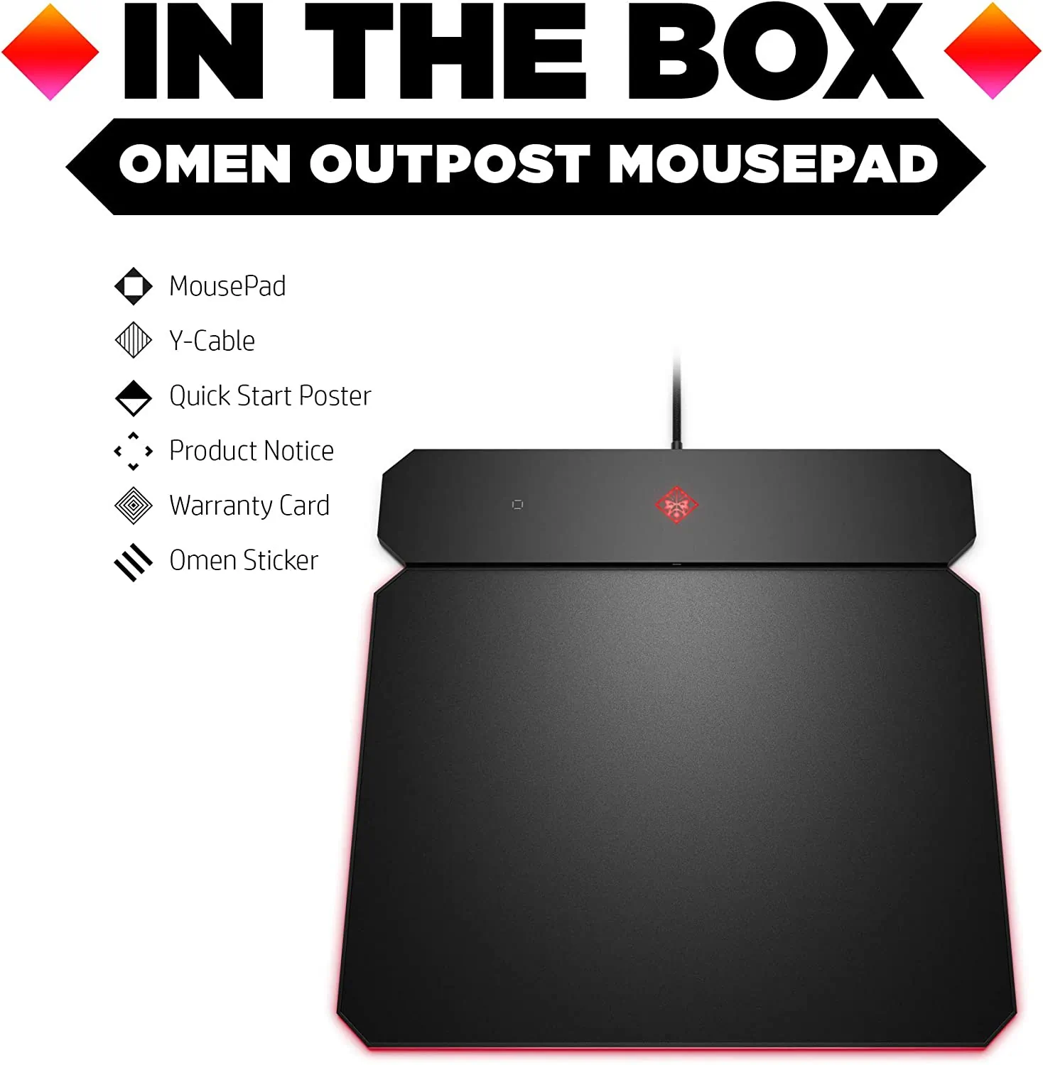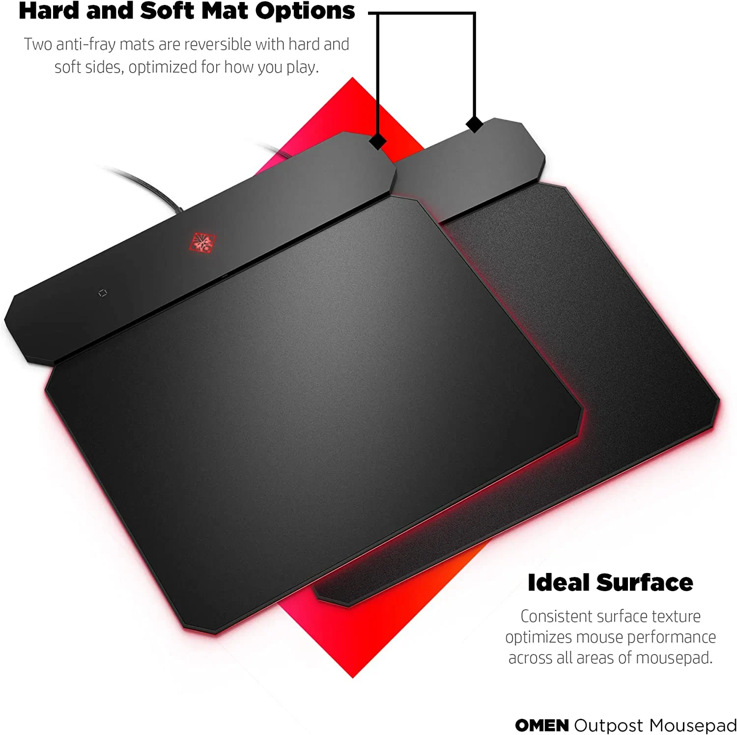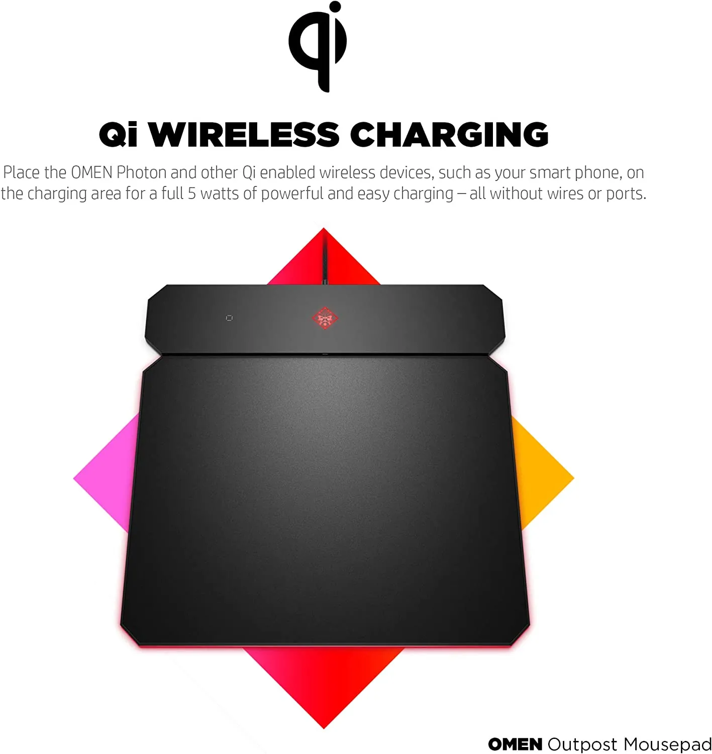Take advantage of your wireless gaming mouse with a Qi-enabled charging mousepad crafted to deliver precision gameplay. Designed for all gamers, the OMEN Outpost mousepad adapts to your play style with dual anti-fray mat options and more control for low DPI mouse settings. Charge your wireless mouse and other devices with built-in Qi wireless charging and illuminate your battle station with brilliant, RGB LED lighting. NOTE: OMEN Command Center is required for customizable settings.