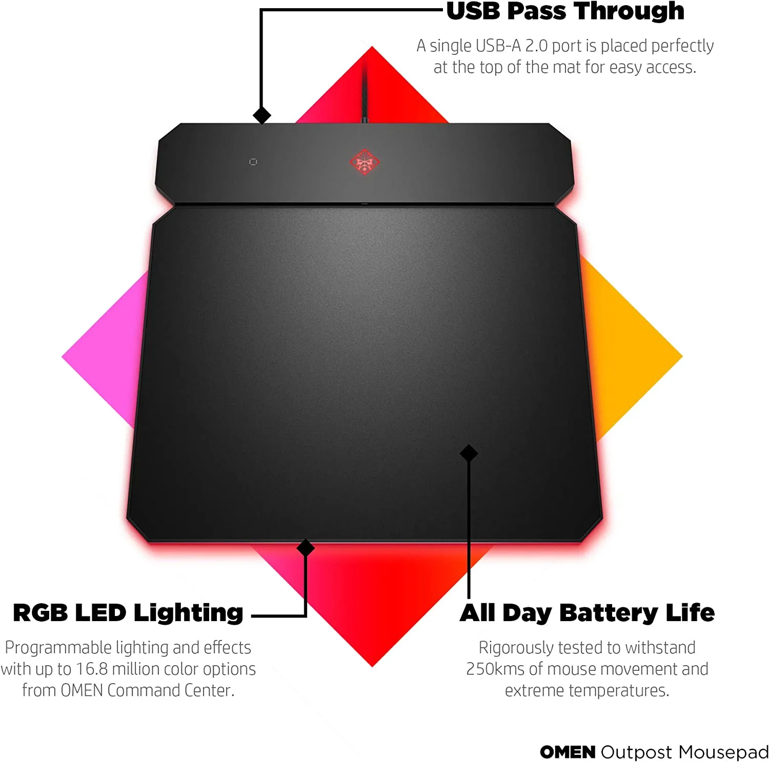 OMEN by HP Outpost Gaming Mouse Pad with Qi Wireless Charging, Custom RGB, and USB-A 2.0 Port, (6CM14AA), Black (6CM14AA#ABL) .