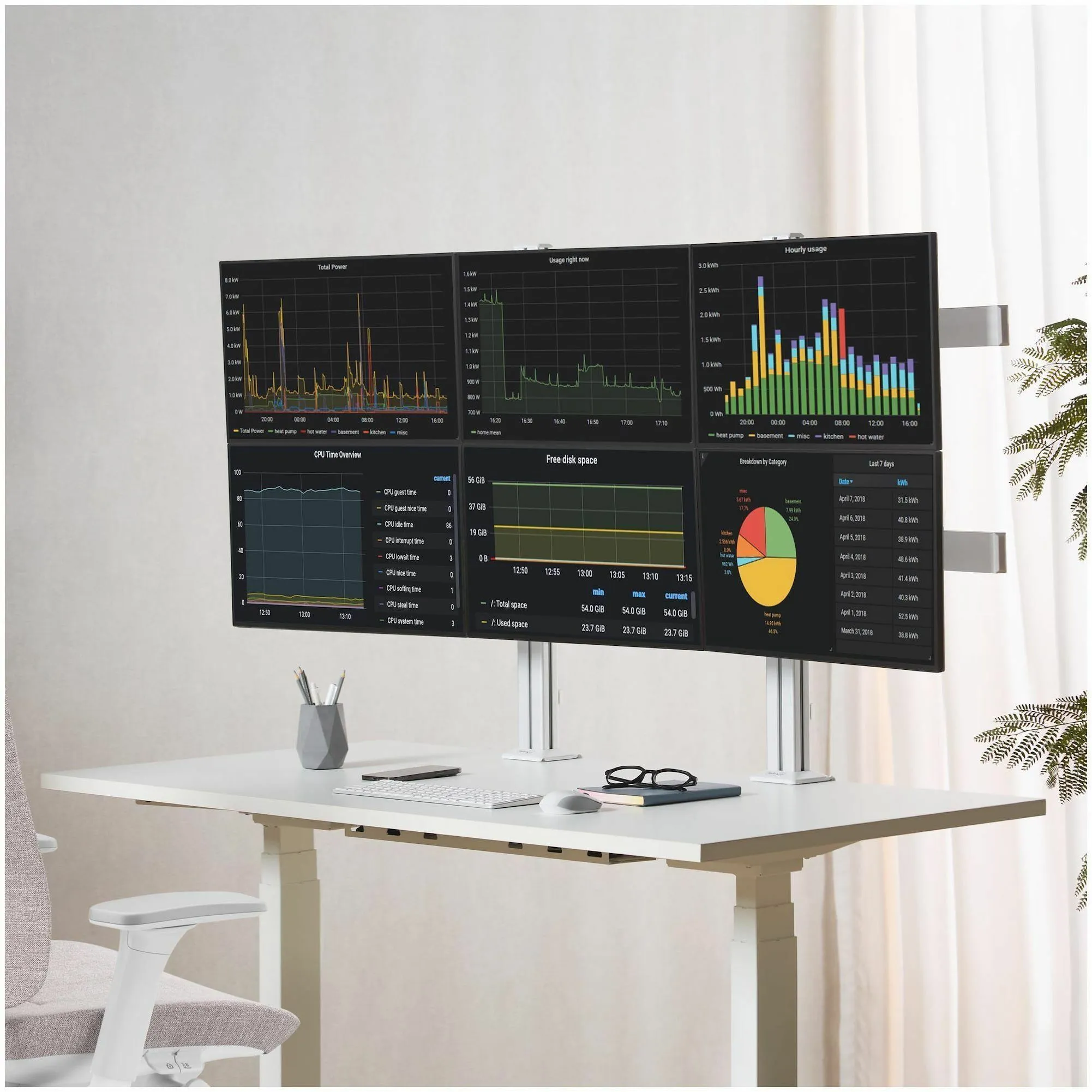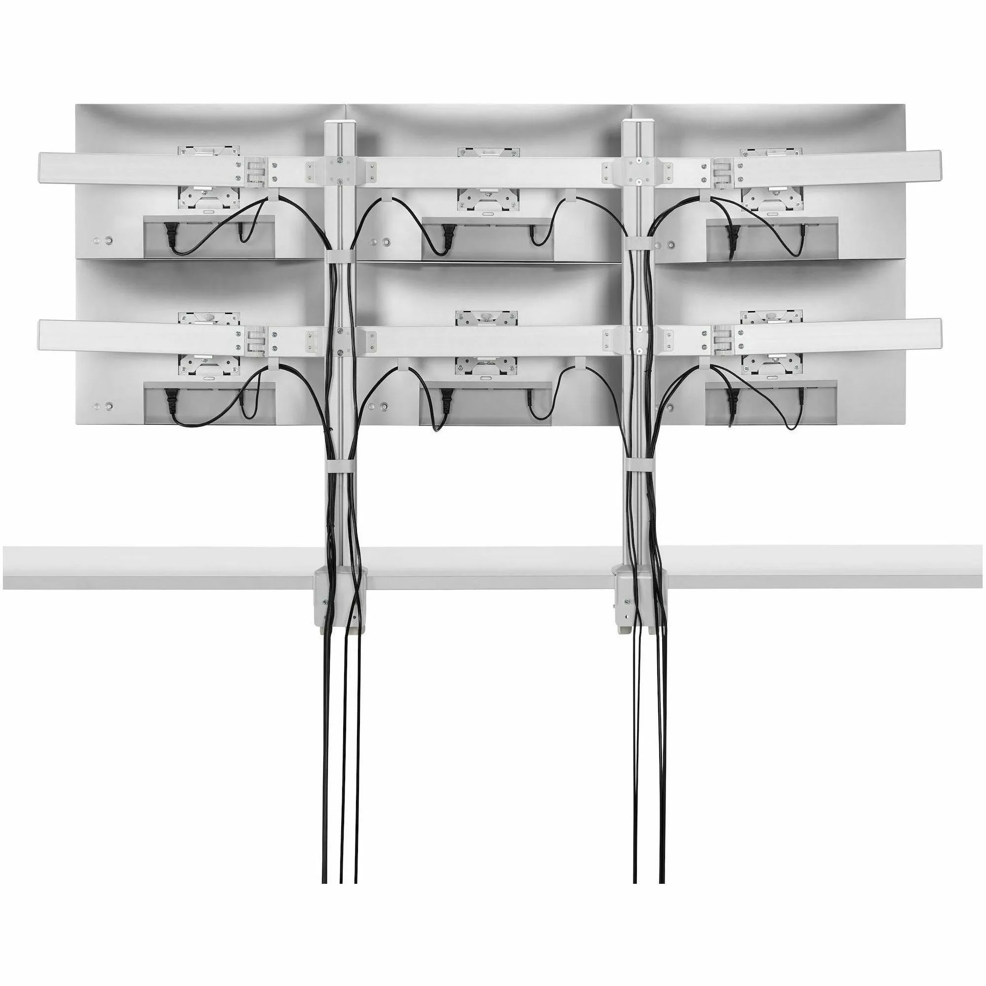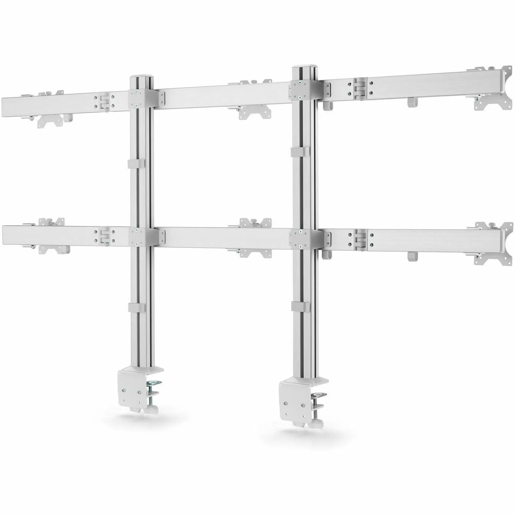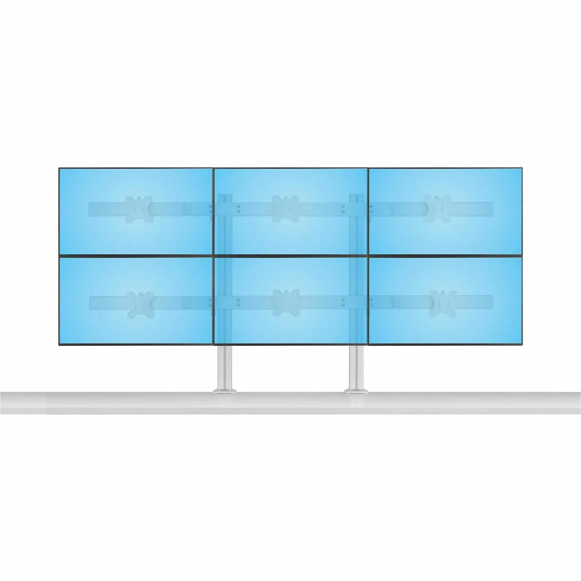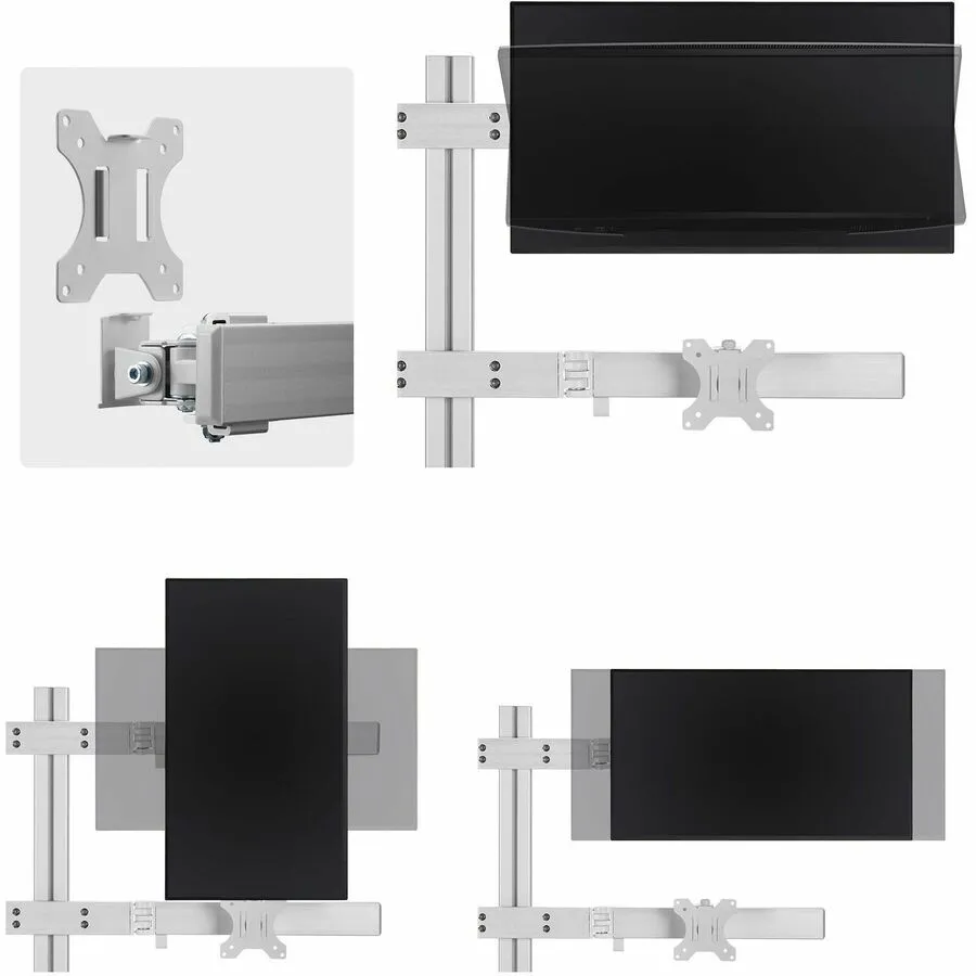 - Six-monitor mount with crossbar design; Adjustable VESA 75/100 for up to 32-inch and 17.6lb per screen - Robust dual column monitor mount with improved base design that won't tilt over time - Micro-height adjustment for perfect display alignment; Ergonomic monitor mounts support +/-17 swivel +/-34 tilt and 360 rotation for portrait/landscape - Rigid mounting options with C-clamps for desks 0.4-2.9" thick or grommet mounts for desks 0.4-1.7" thick - Includes cable clips for a tidy setup