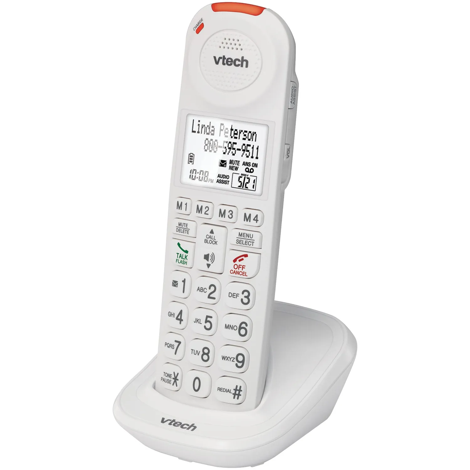 The SN5107 Amplified Accessory Handset is designed for ease of use, featuring large buttons and a clear display. This handset utilizes DECT 6.0 technology and requires a compatible SN5000 series phone to operate. With smart call blocking for up to 1,000 names and numbers, it ensures a more peaceful calling experience.