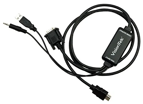 The VisionTek VGA to HDMI Active Adapter will convert an analog VGA signal into a HDMI signal. The 1.5M cable includes a 3.5mm audio connector that will pick up audio from source and combine audio into a single HDMI video/audio signal. This is the ideal solution for converting VGA video and onboard sound into an HDMI signal that can be used to connect to monitors and HDTVs.