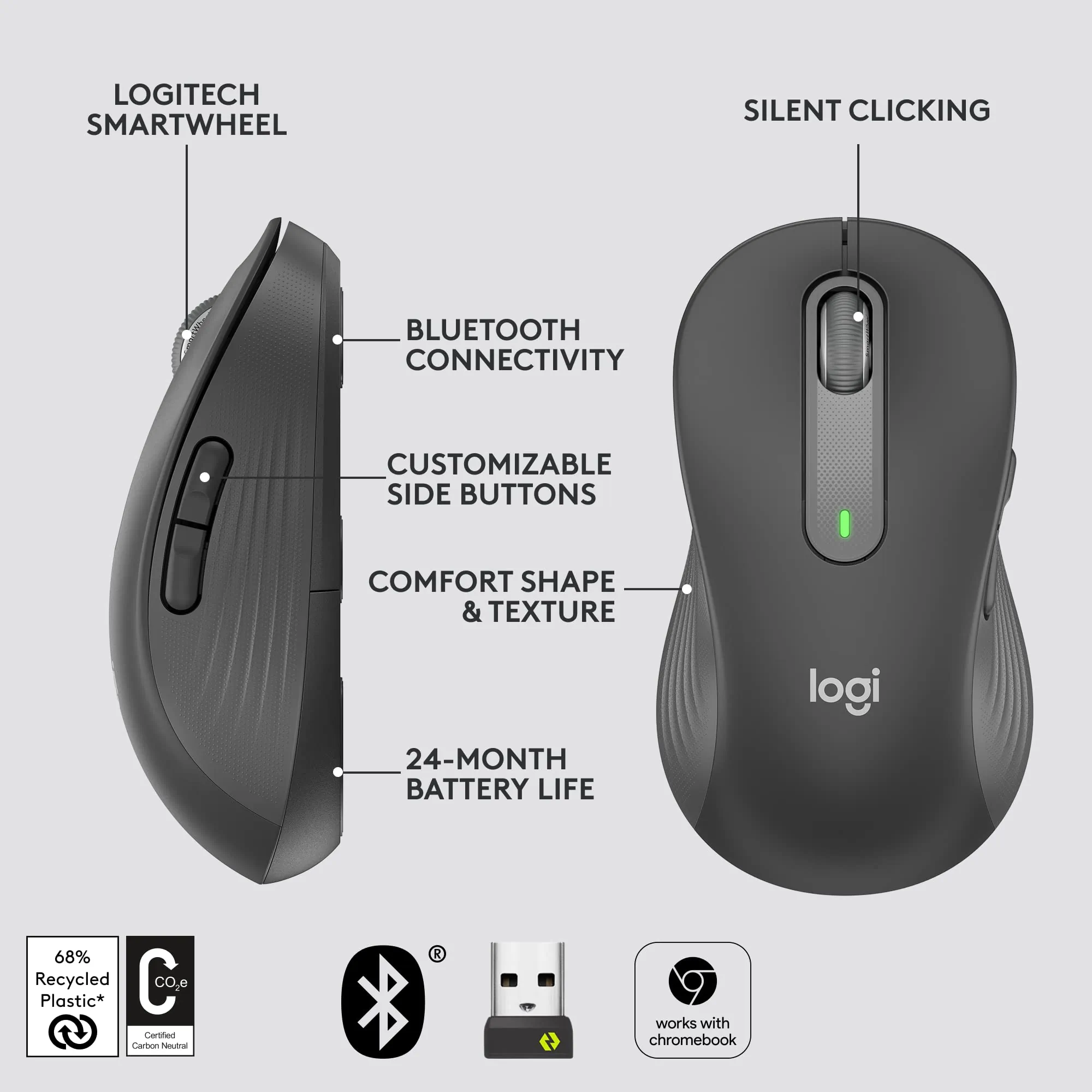 The Logitech Signature M650 L Wireless Mouse offers an upgrade in comfort and productivity with its innovative SmartWheel scrolling technology. Specifically designed for left-handed users and available in various sizes, this mouse ensures a custom fit for enhanced usability.