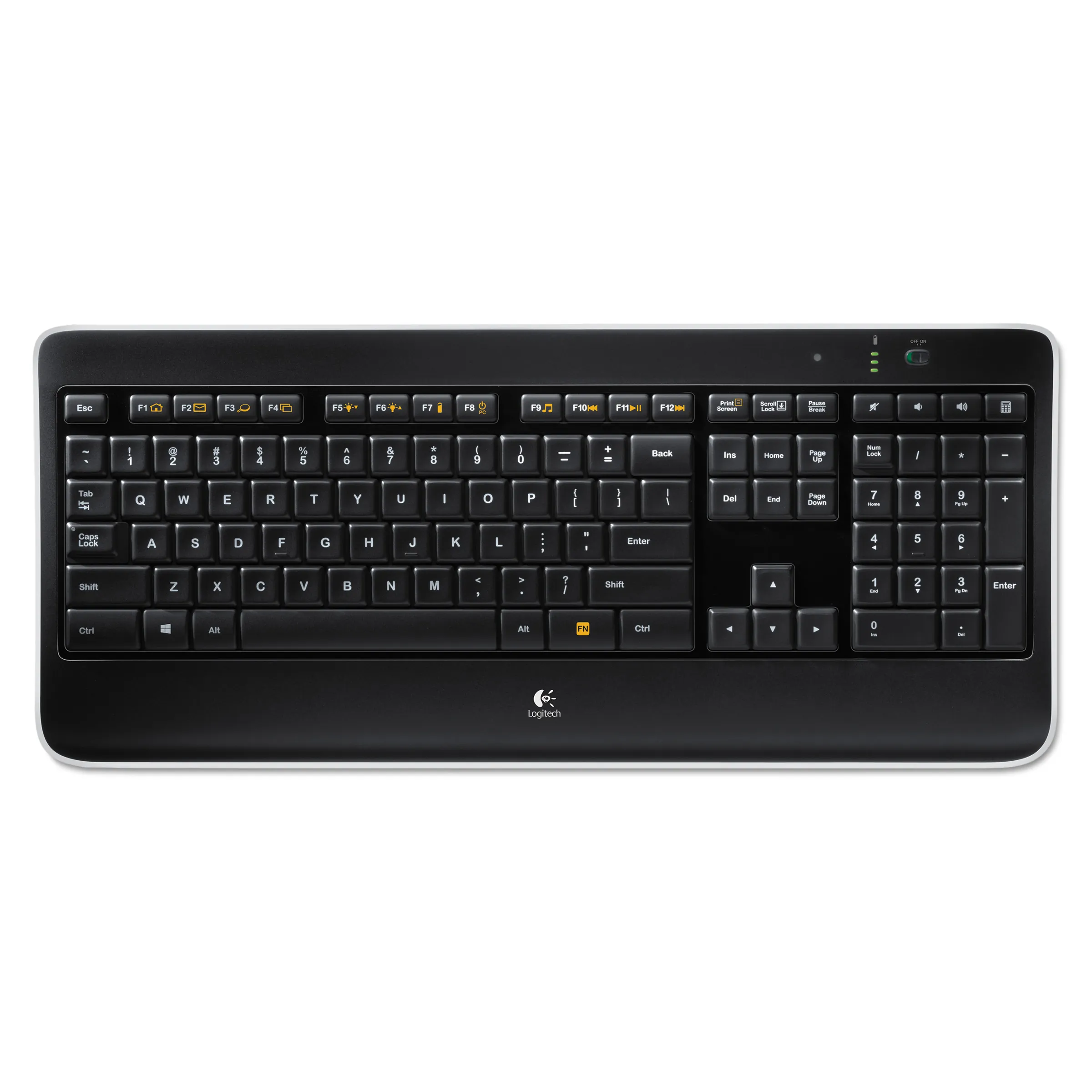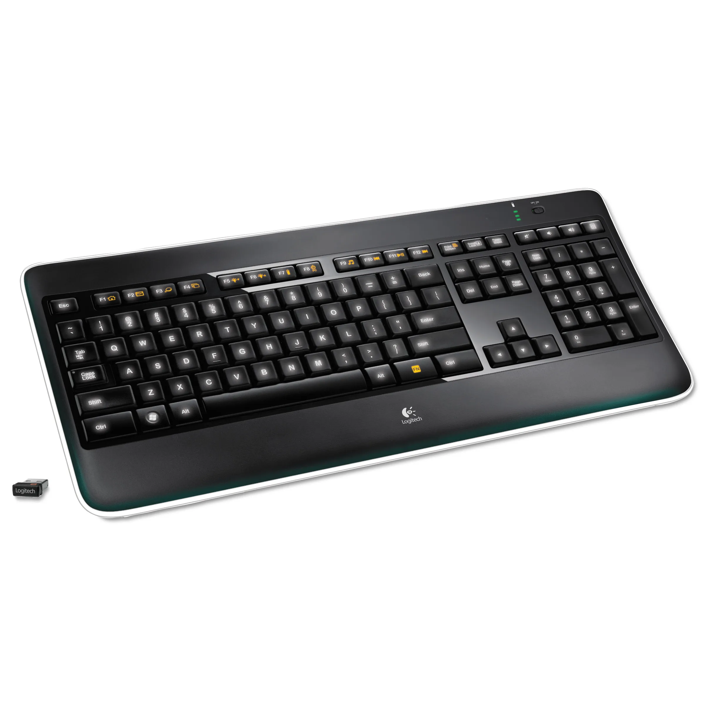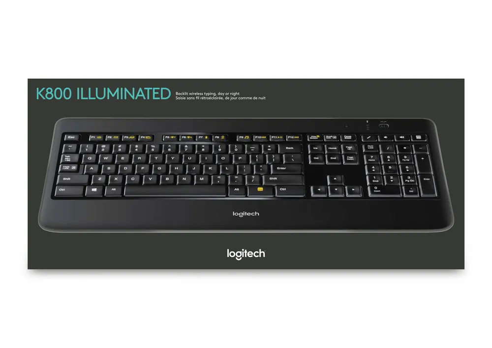Wireless keyboard features laser-etched, backlit keys that you can see easily in any light. The PerfectStroke key system helps make every stroke fluid and whisper-quiet. Concave design and softly rounded edges of the durable Logitech Incurve keys position your fingers properly. Flexible recharging eliminates the need for disposable batteries. Simply plug in the universal micro-USB cable for up 10 days of battery life on a single charge. Even use the keyboard while it's recharging. Advanced 2.4 GHz wireless delivers a long-range wireless connection that virtually eliminates delays, dropouts, and interference. The tiny included Logitech Unifying receiver stays in your laptop so there's no need to unplug it, risking loss or damage. Plug-and-play receiver also allows you to add compatible mice and keyboards. Wireless K800 also includes a micro-USB charging cable and receiver extender cable, and is compatible with Windows XP, Windows Vista and Windows 7.