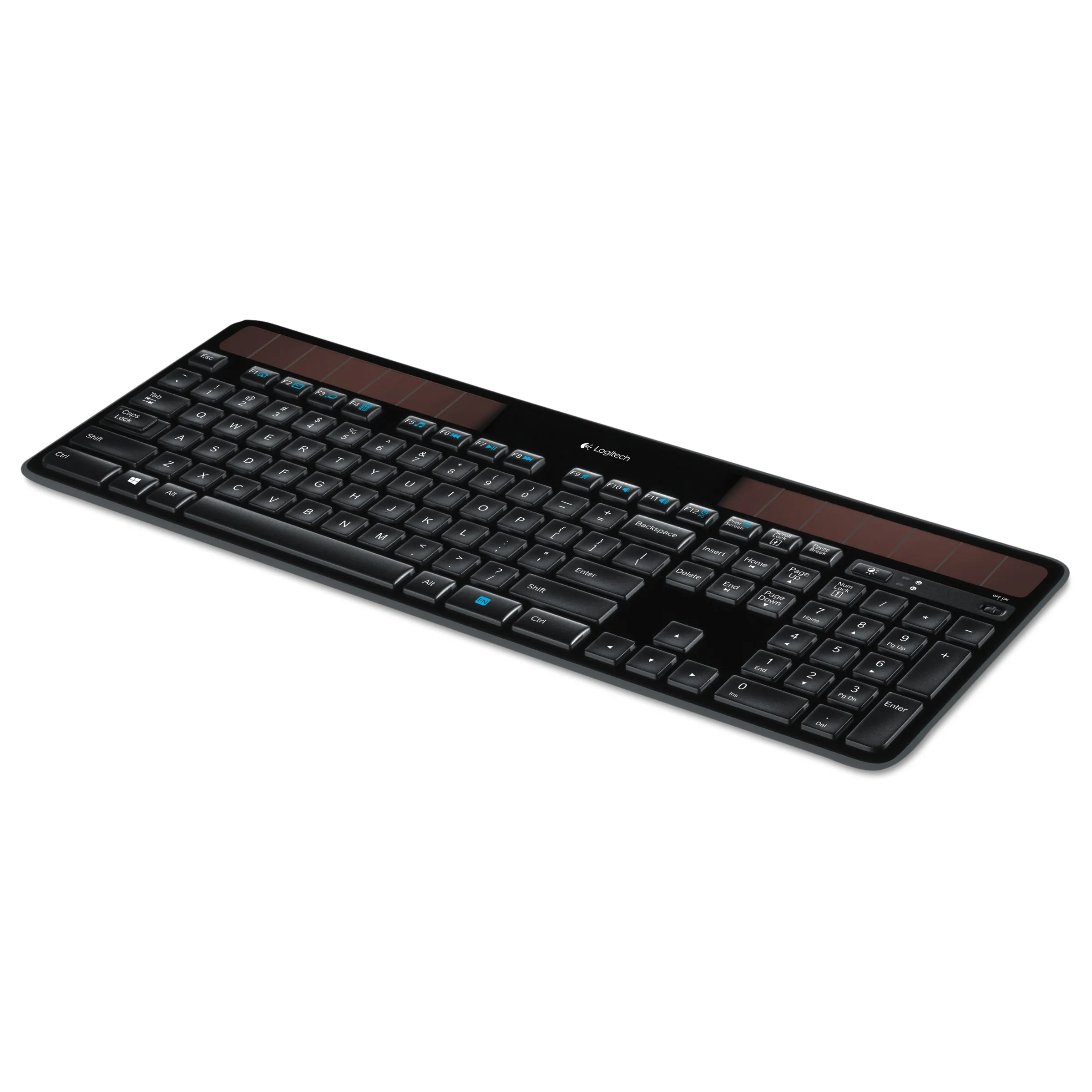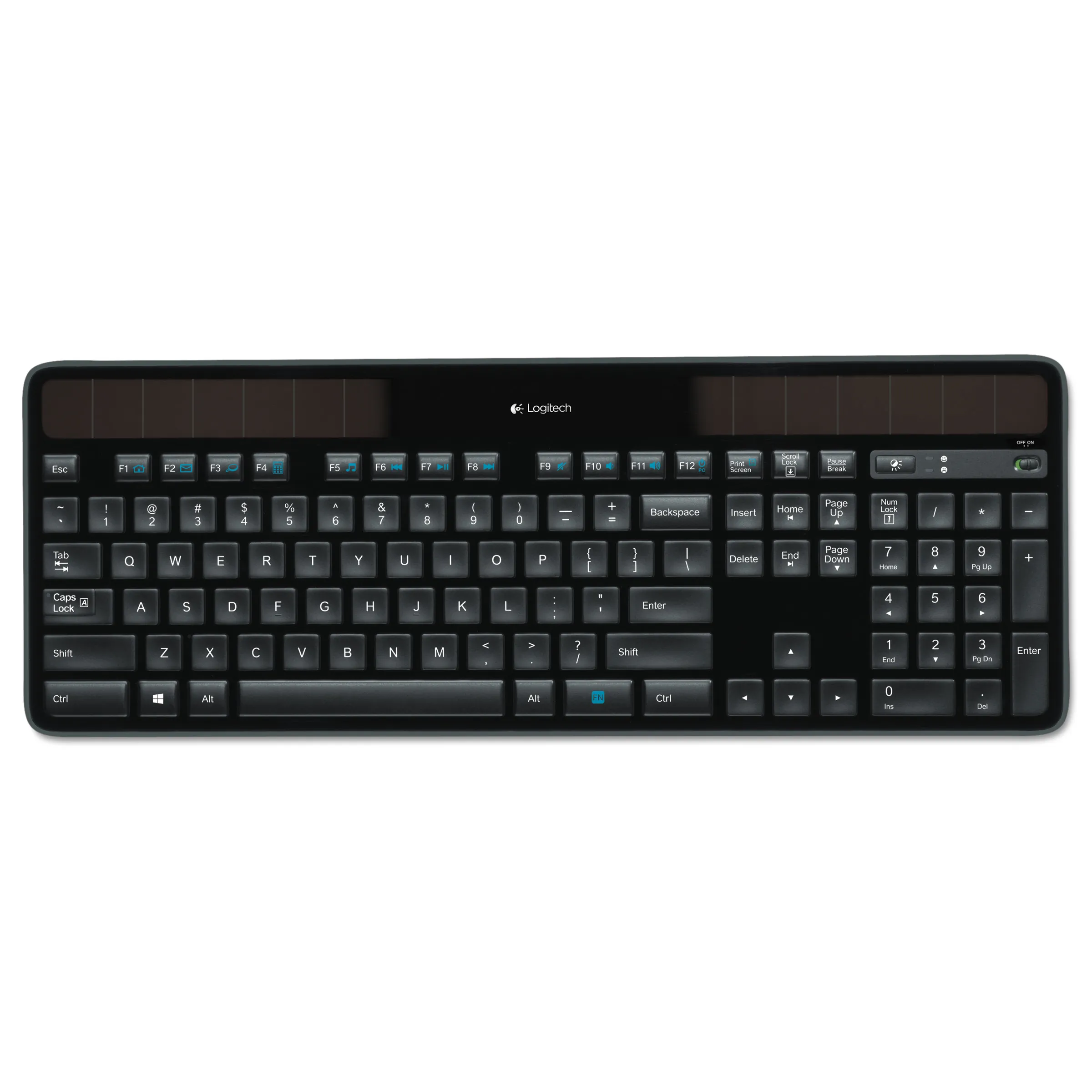 The K750 Wireless Solar Keyboard from Logitech makes battery hassles a thing of the past. This keyboard charges itself whenever theres light and stays charged for at least three months in total darkness. Plus you can treat your hands right with keys that feel good and make every keystroke comfortable, fluid and whisper-quiet. Additionally advanced 2.4 GHz wireless connectivity allows you to work or play from more places like your comfortable couch and also its long-range wireless connection virtually eliminates delays, dropouts or interference. Besides this it comes with Solar App which tells you how much battery power you have- Moreover with Logitech Unifying receiver that stays in your notebook and facilitates you to easily add a compatible wireless mouse without the hassle of multiple USB receivers. Packed with all these features and more this sleek lines and a thin profile, this stylish, streamlined keyboard adds style to your workspace whether youve got a laptop or desktop. Device Type: Keyboard - wireless Interface: 2.4 GHz Wireless Receiver: USB wireless receiver Service & Support: 3 years warranty Service & Support Details: Limited warranty - 3 years Included Accessories: Cleaning cloth Compatible with Windows 7: Compatible with Windows 7 Layout: English - US OS Required: Microsoft Windows Vista / XP / 7 Manufacturer Warranty: 3 years warranty Device Type: Keyboard - wireless Interface: 2.4 GHz Wireless Receiver: USB wireless receiver Microsoft Certification: Compatible with Windows 7 Layout: English - US