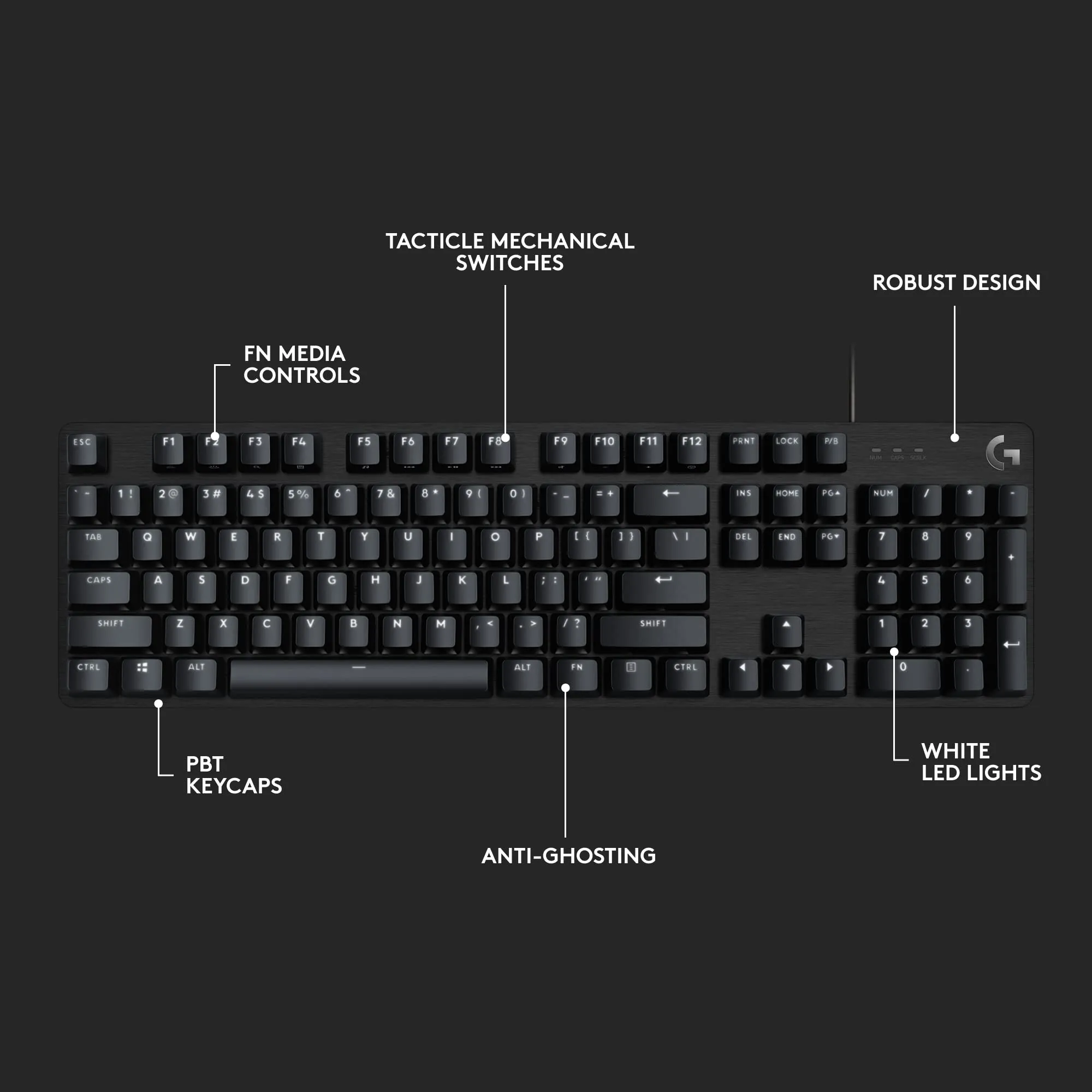• Anti-ghosting technology for simultaneous key presses