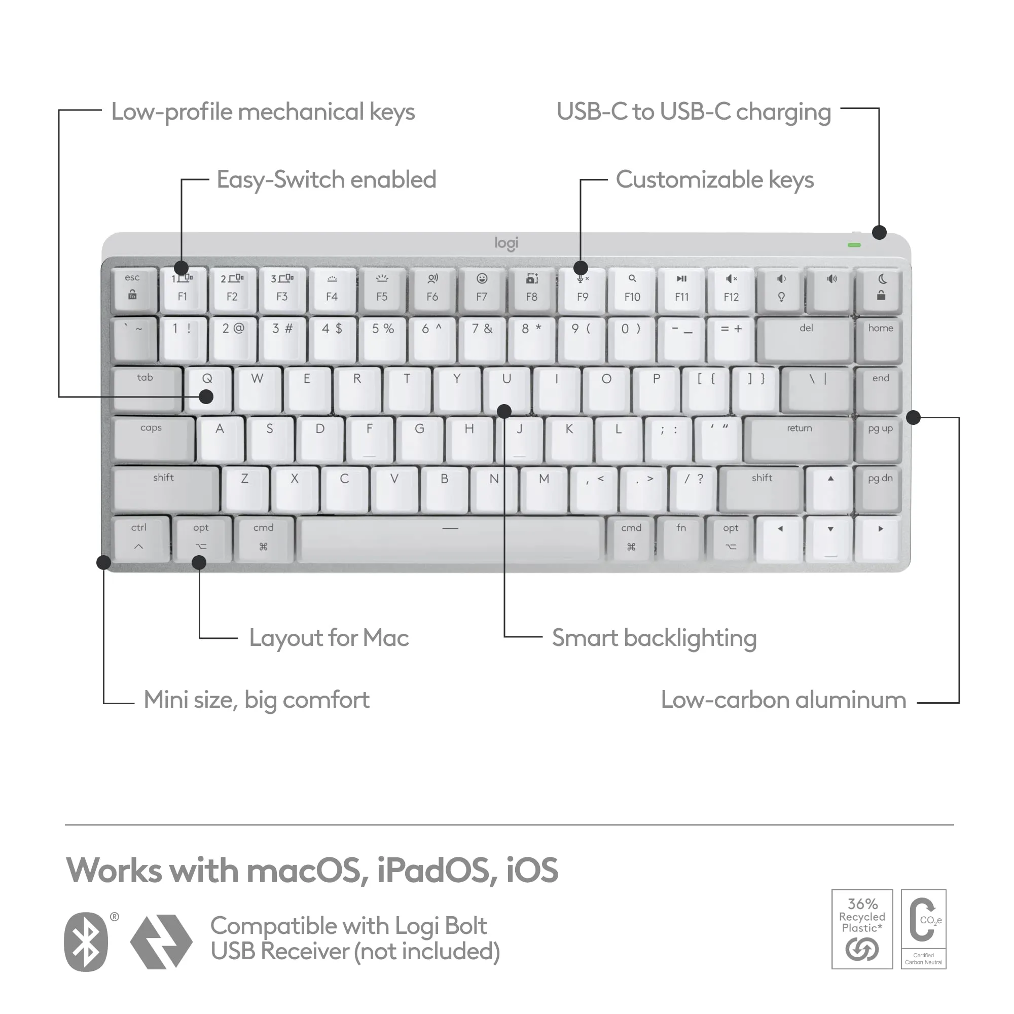Logitech MX Mechanical Mini for Mac Minimalist Wireless Illuminated Keyboard (Pale Grey)