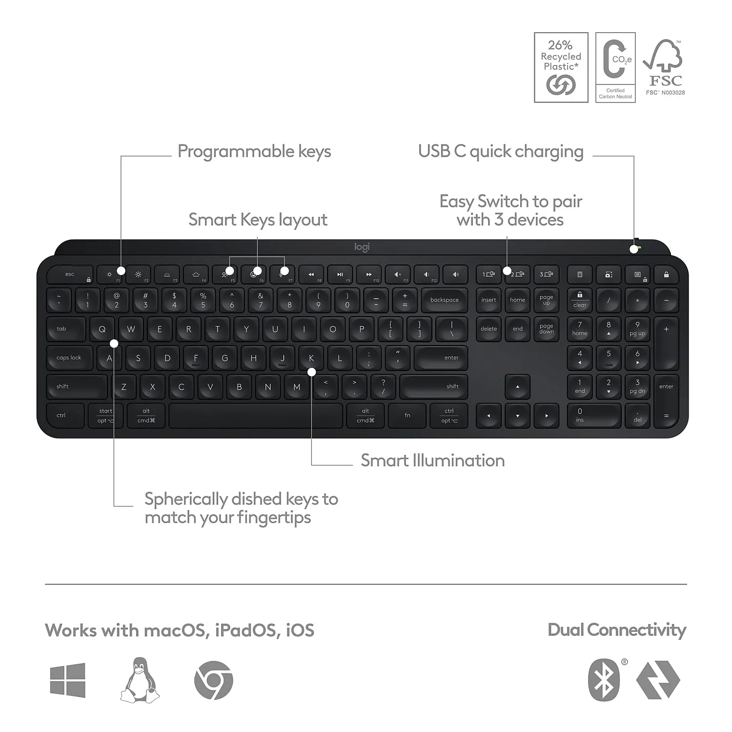 Logitech MX Keys S Wireless Keyboard - Graphite